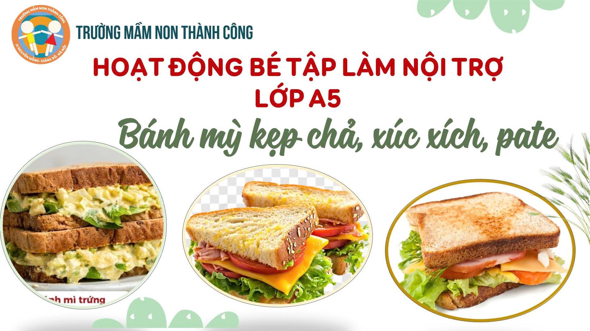 Bữa sáng vui vẻ với món “Bánh mỳ kẹp chả, xúc xích, pate” tại lớp mẫu giáo lớn A5