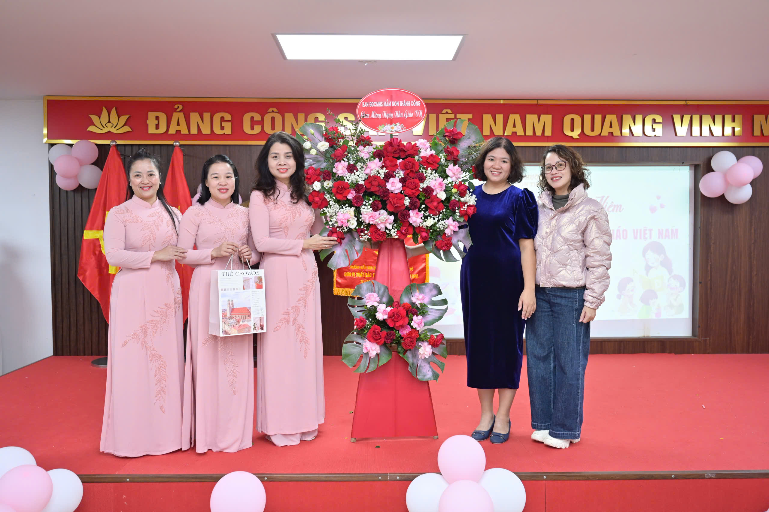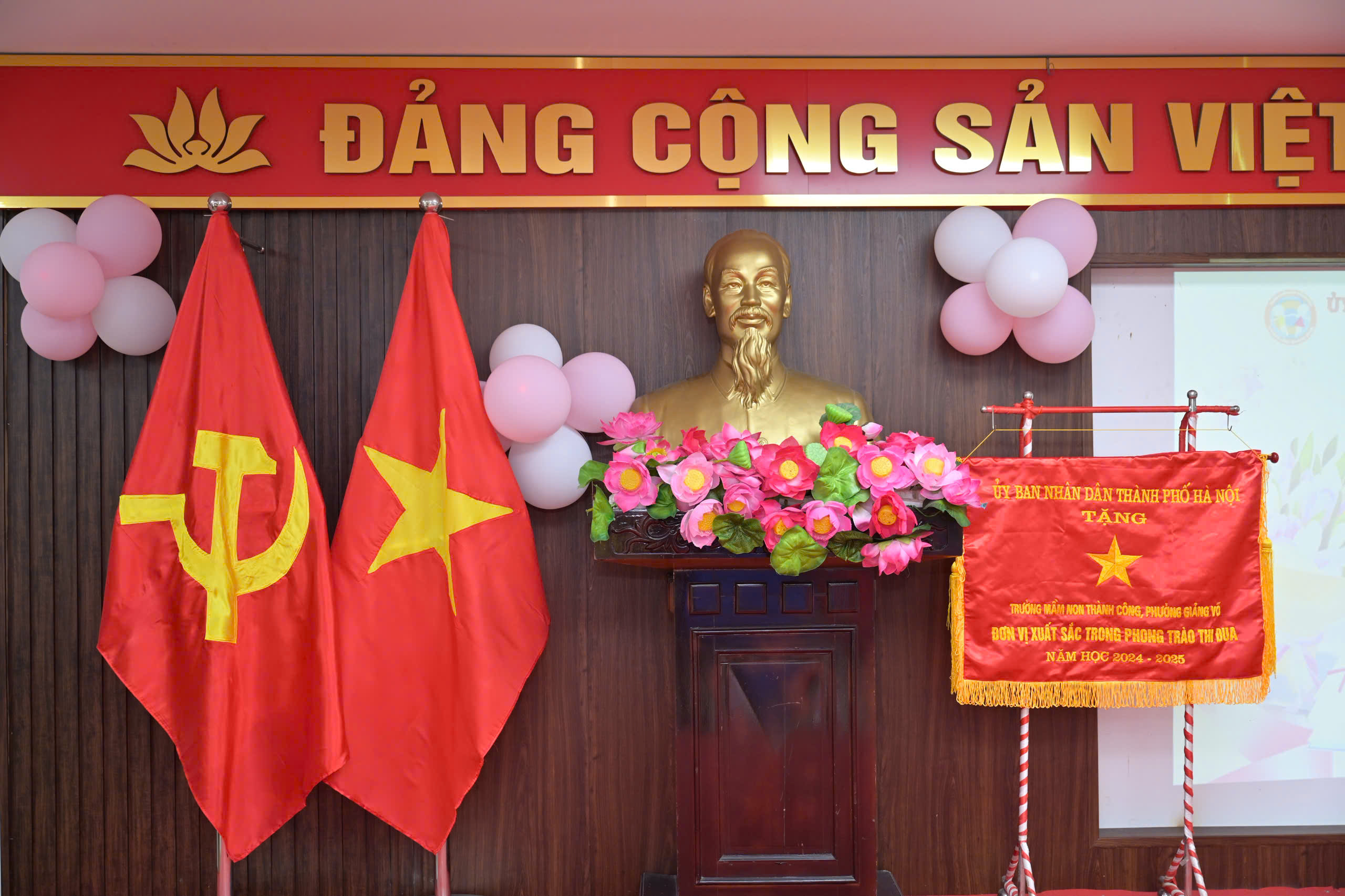 Trong không khí trang trọng của buổi lễ, đại diện Đảng ủy - HDND - UBND - UBMTTQ phường Giảng Võ, và đại diện Cha mẹ học sinh Nhà trường đã lên tặng hoa chúc mừng, gửi lời tri ân và ghi nhận những nỗ lực, thành tích nổi bật của Trường Mầm non Thành Công trong năm học qua. Những lẵng hoa tươi thắm thể hiện sự quan tâm, đồng hành và niềm tin của lãnh đạo địa phương cùng phụ huynh đối với tập thể cán bộ, giáo viên, nhân viên nhà trường.