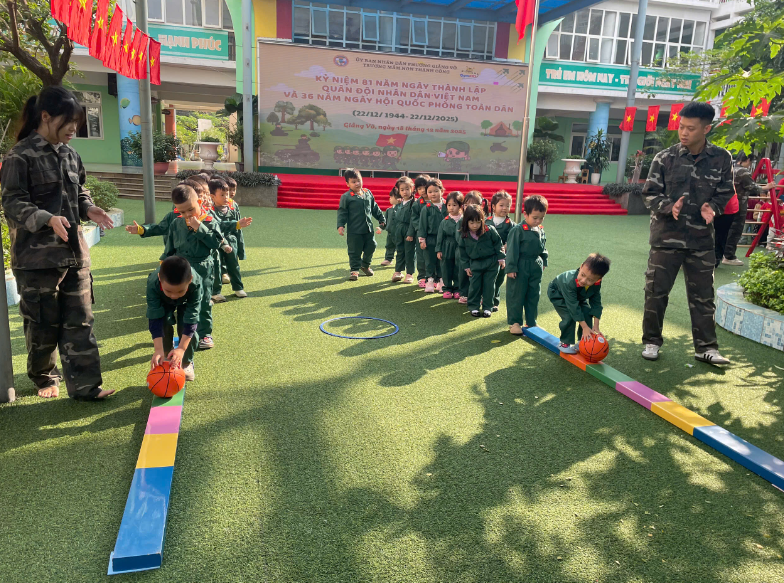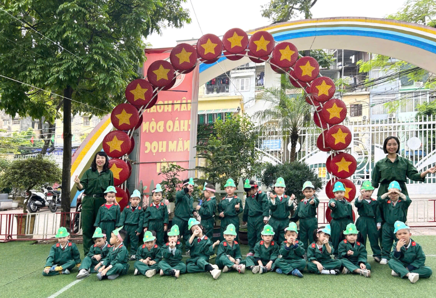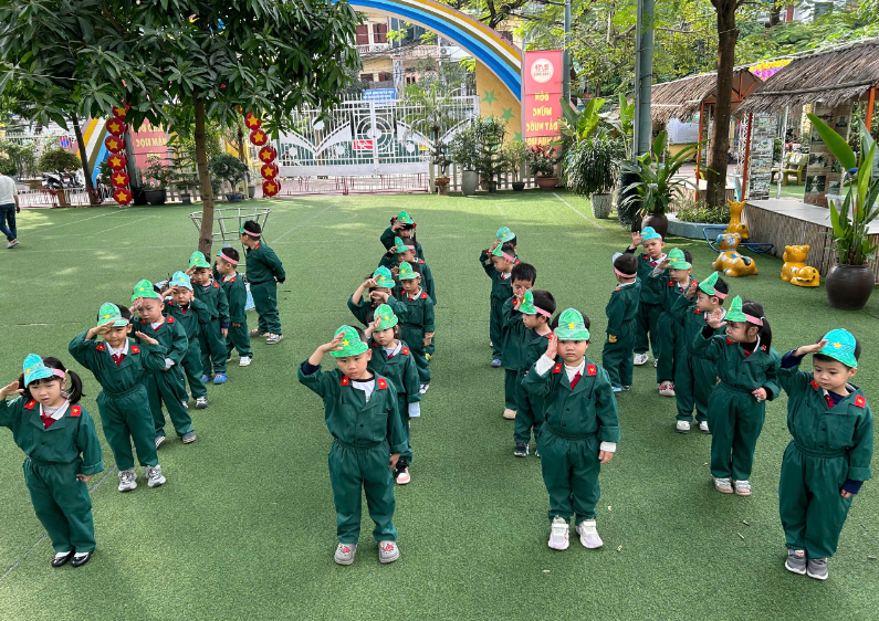 Chào mừng 81 năm ngày thành lập Quân đội Nhân dân Việt Nam, tập thể lớp B6 đã sôi nổi tổ chức chuỗi hoạt động trải nghiệm: 🌿 Bé đi thăm bảo tàng B52 - Tìm hiểu lịch sử & xem tư liệu về các chú bộ đội. 🌿 cùng nhau thể thể hiện bài đồng diễn “khát vọng tuổi trẻ”gửi tặng các chú bộ đội 🌿Trải nghiệm tác phong quân đội qua các trò chơi vận động liên hoàn với các nội dung đơn giản, phù hợp với thể lực và khả năng nhận thức của trẻ, góp phần rèn luyện sự khéo léo, nhanh nhẹn và tinh thần kỷ luật.🌿 Sáng tạo qua bài học tạo hình “Bé làm mũ chú bộ đội”.