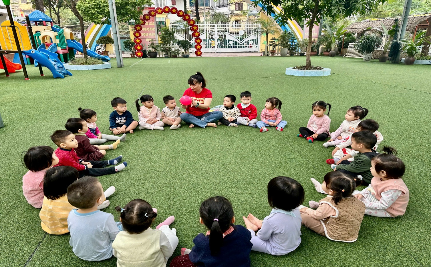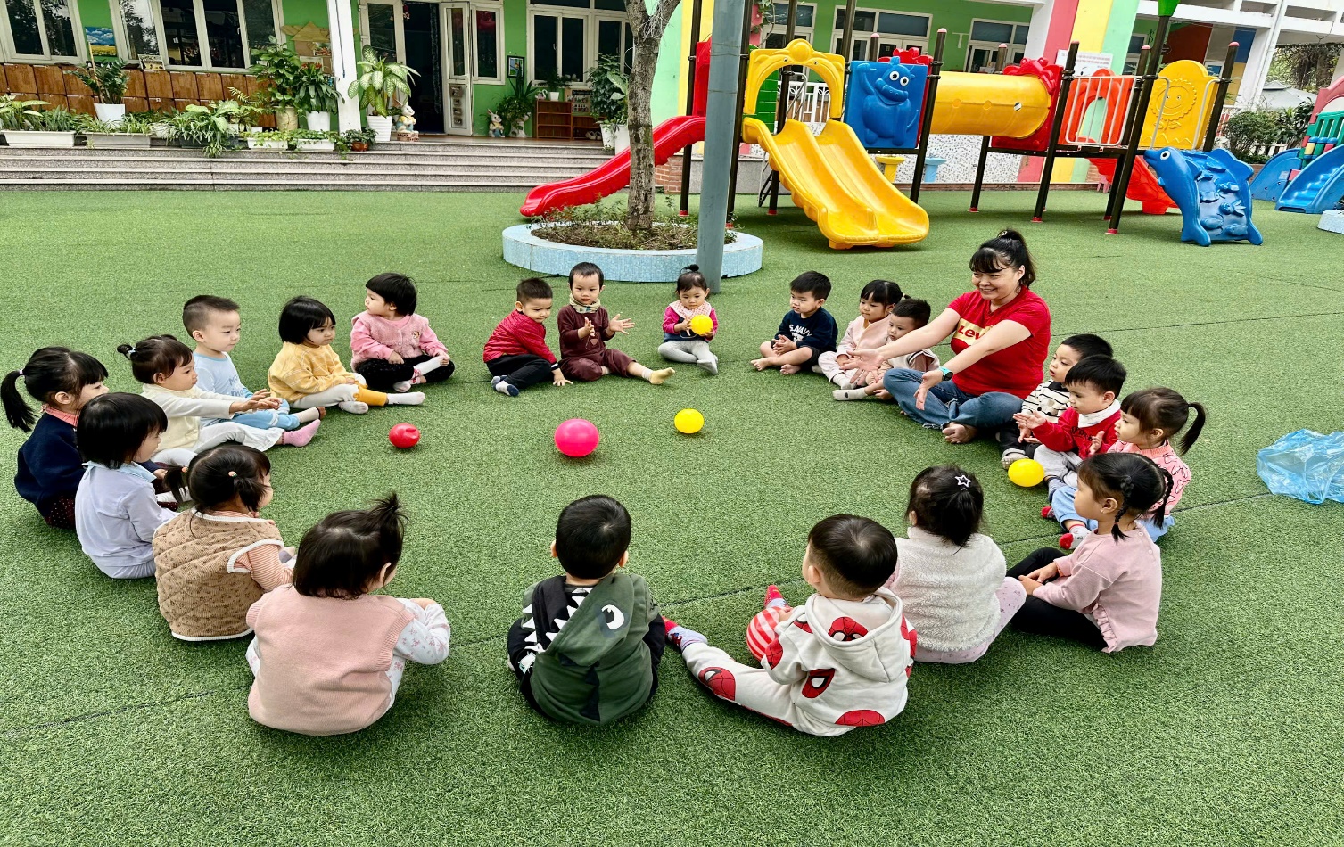 Sau đây là một số hình ảnh các bé chơi với quả bóng