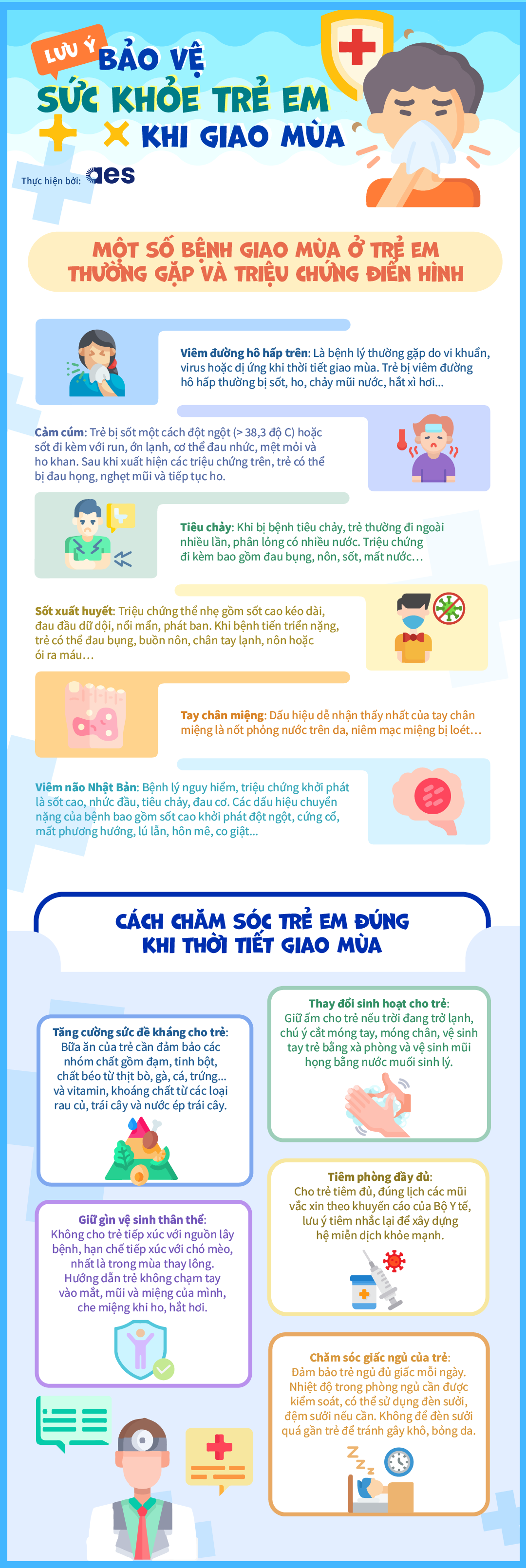 Thời tiết thay đổi thất thường khi giao mùa gây ảnh hưởng đến sức khỏe, đặc biệt là trẻ em có sức đề kháng yếu. Infographic cung cấp các thông tin cần thiết để bố mẹ lưu ý phòng ngừa và nhận biết sớm các dấu hiệu của bệnh giao mùa, giúp trẻ được khỏe mạnh.