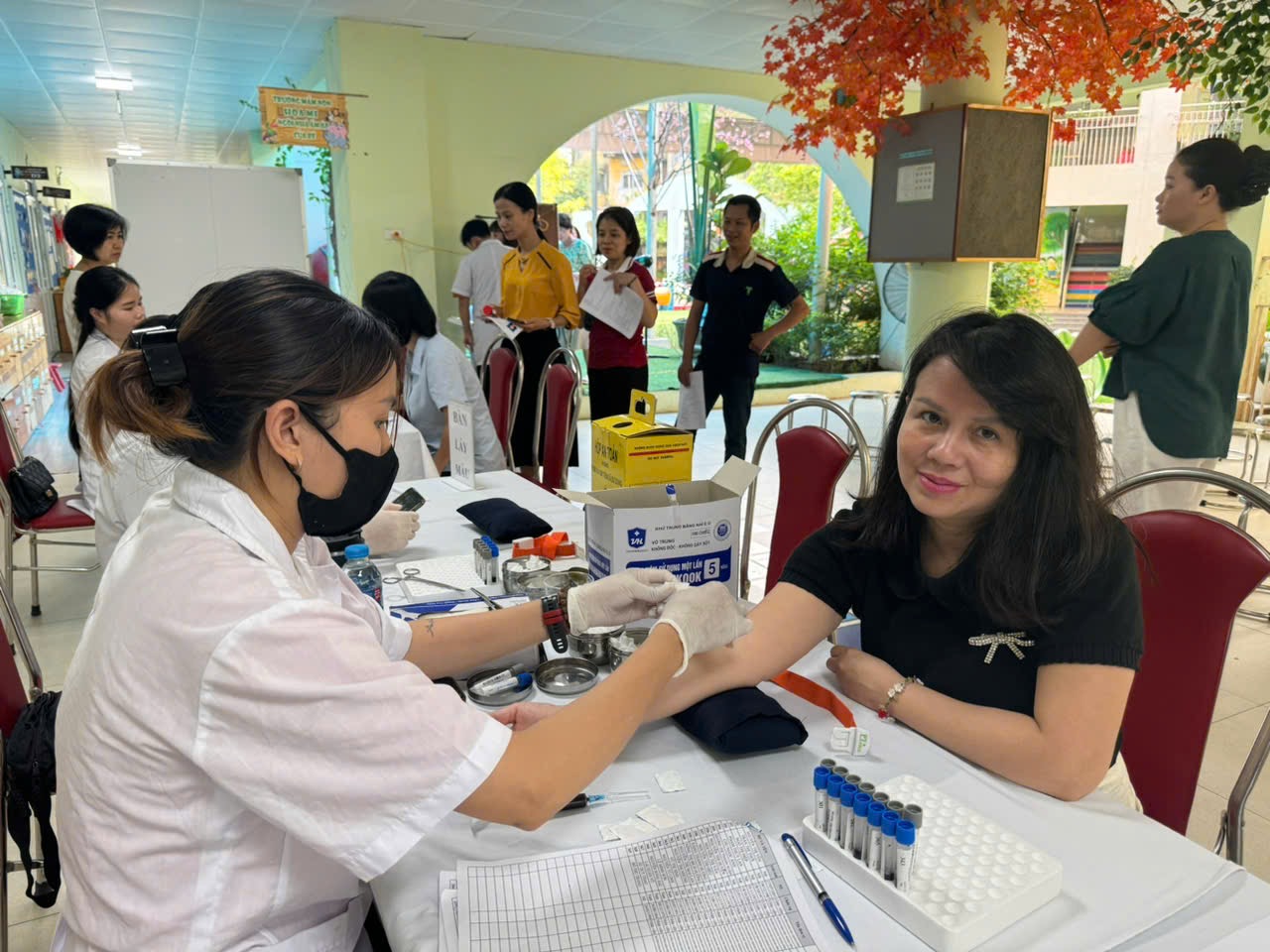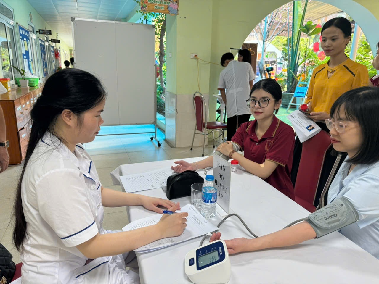 Trong buổi khám, các cán bộ, giáo viên và nhân viên nhà trường đã được thăm khám tổng quát, kiểm tra huyết áp, tim mạch, tai mũi họng, mắt, răng hàm mặt… cùng nhiều danh mục cần thiết khác. Bên cạnh đó, đội ngũ y bác sĩ còn tư vấn tận tình về chế độ dinh dưỡng, lối sống lành mạnh, cách phòng ngừa và phát hiện sớm các bệnh thường gặp.