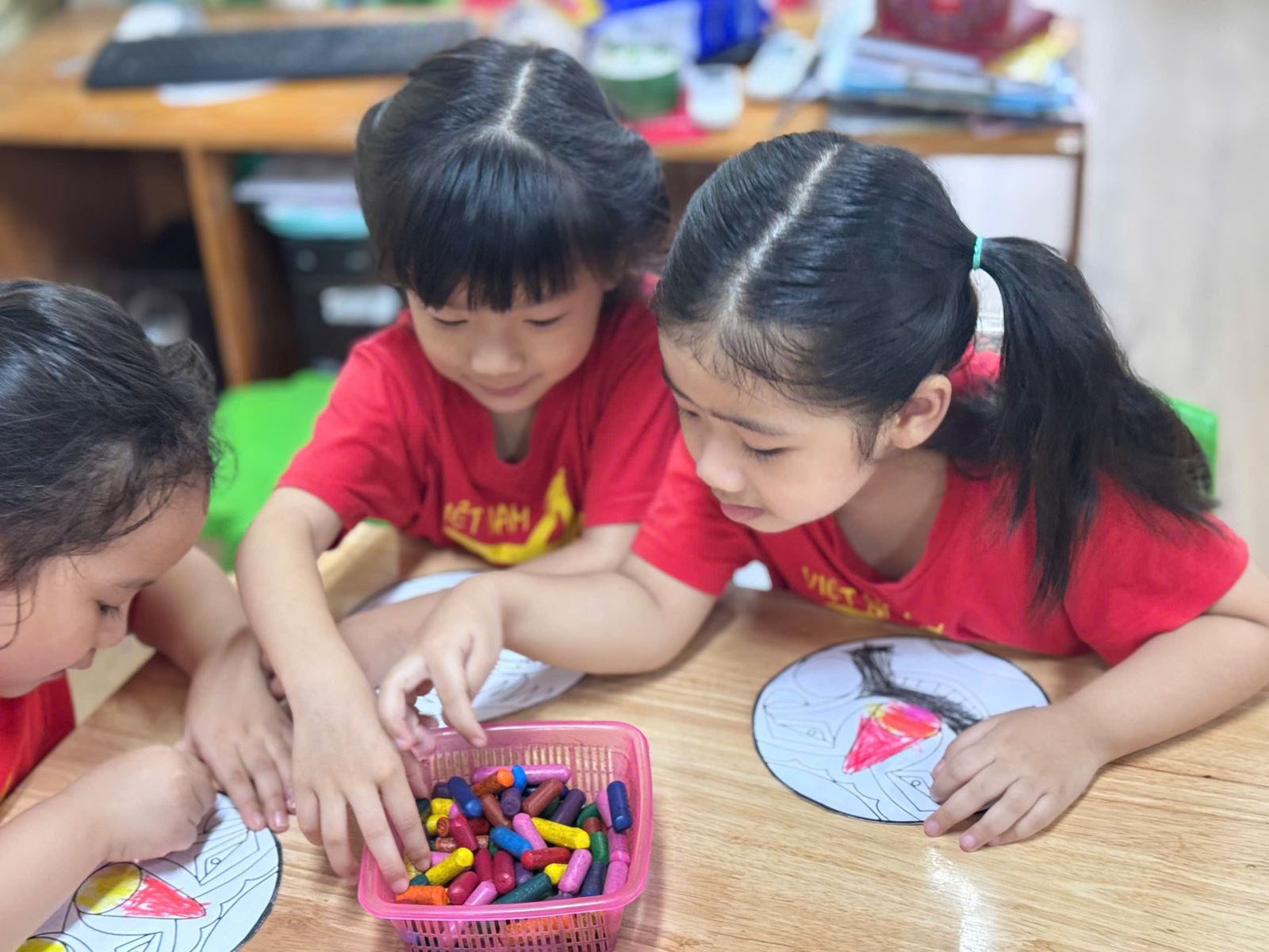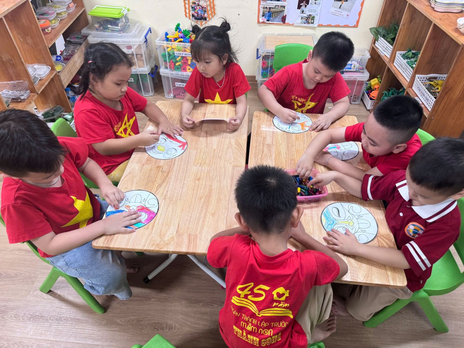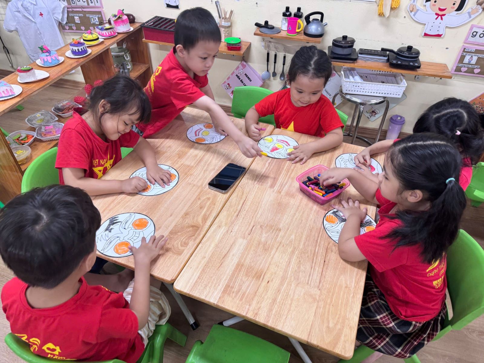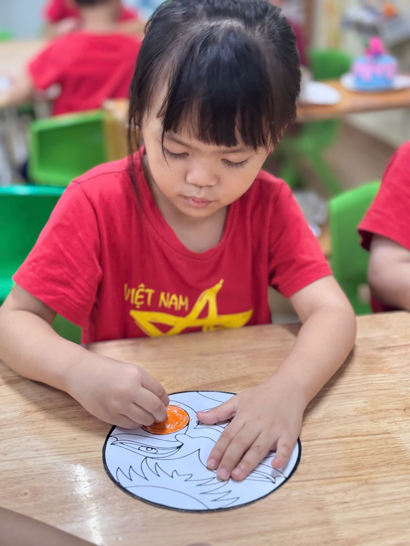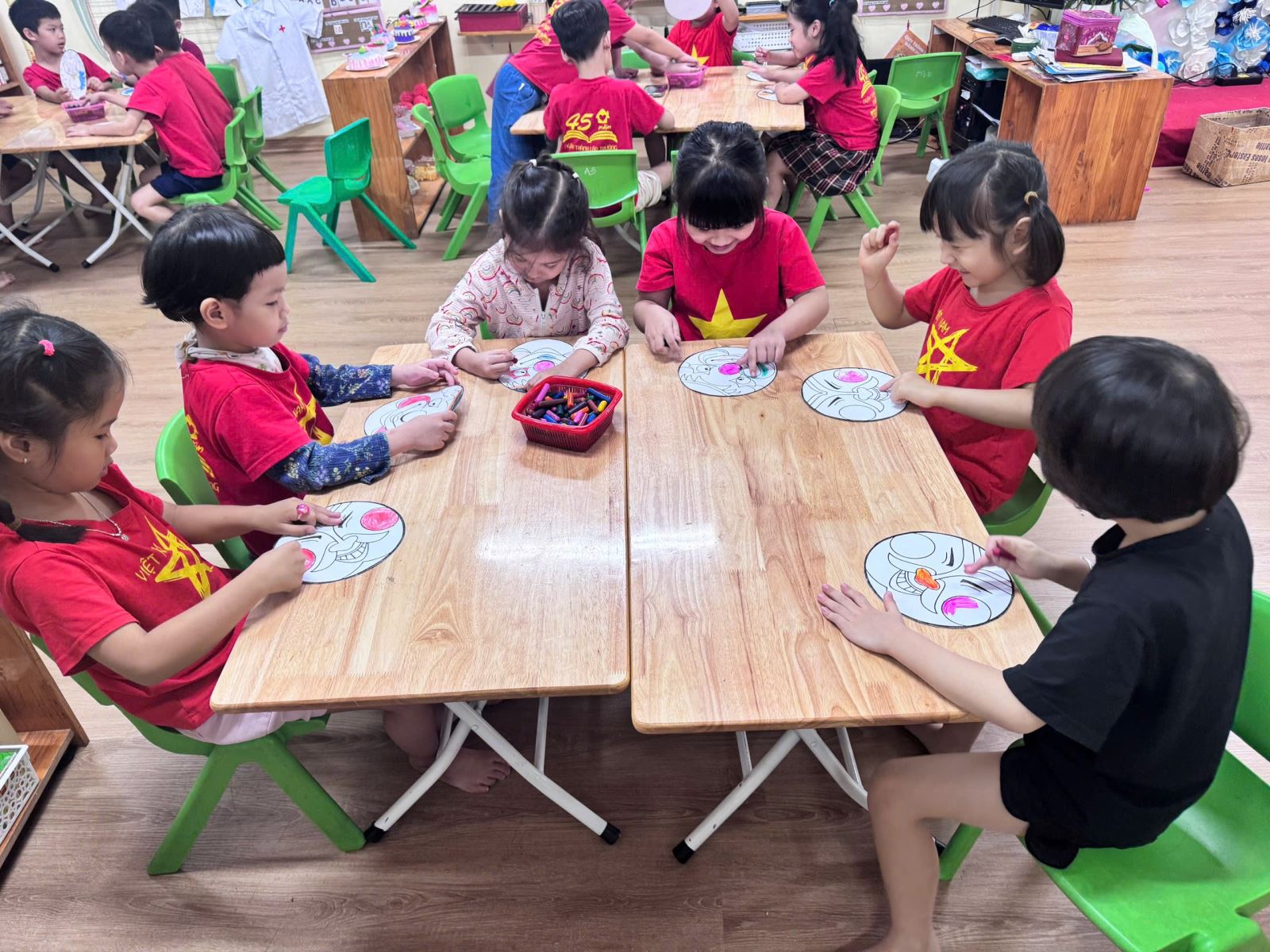 Với cảm nhận màu sắc và đôi tay khéo léo, các bé đã trang trí cho mình 1 chiếc mặt nạ thật đáng yêu rực rỡ sắc màu.
