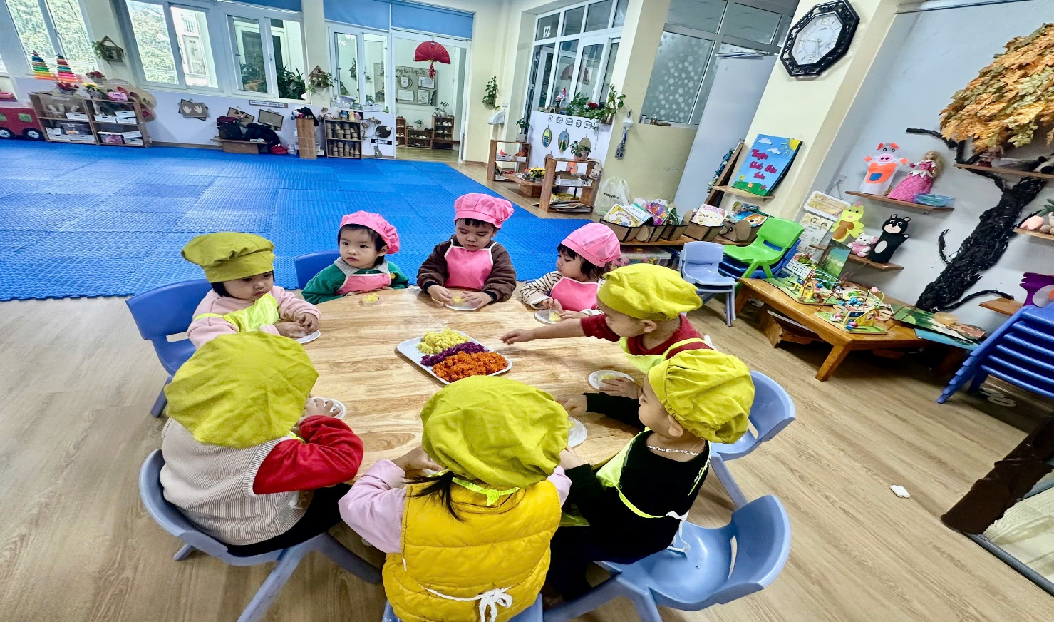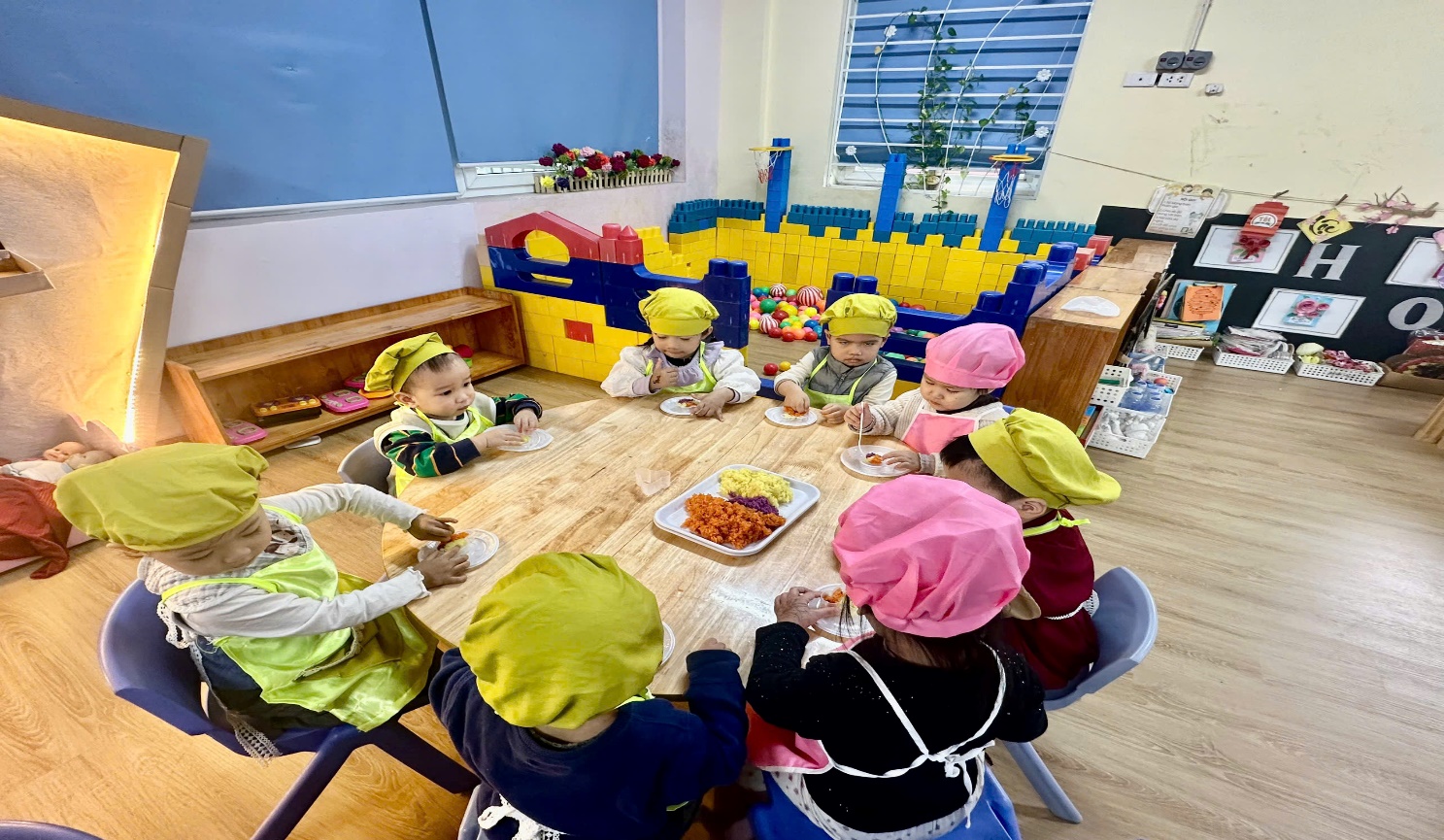 Sau đây là một số hình ảnh các bé D2 trong giờ bé tâp làm nội trợ bé nặn oản xôi.