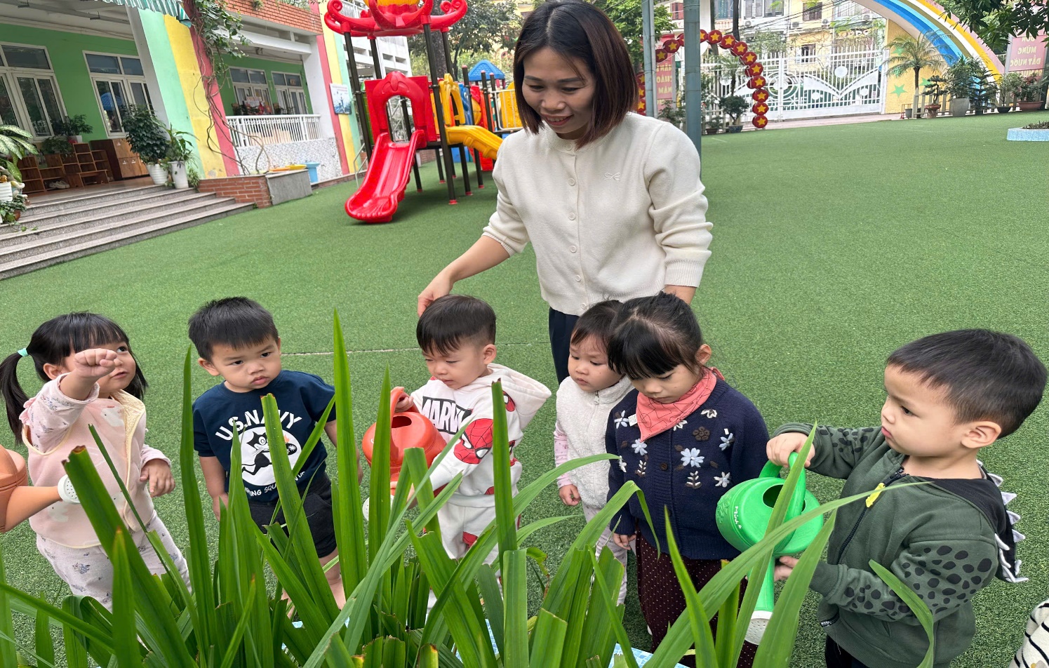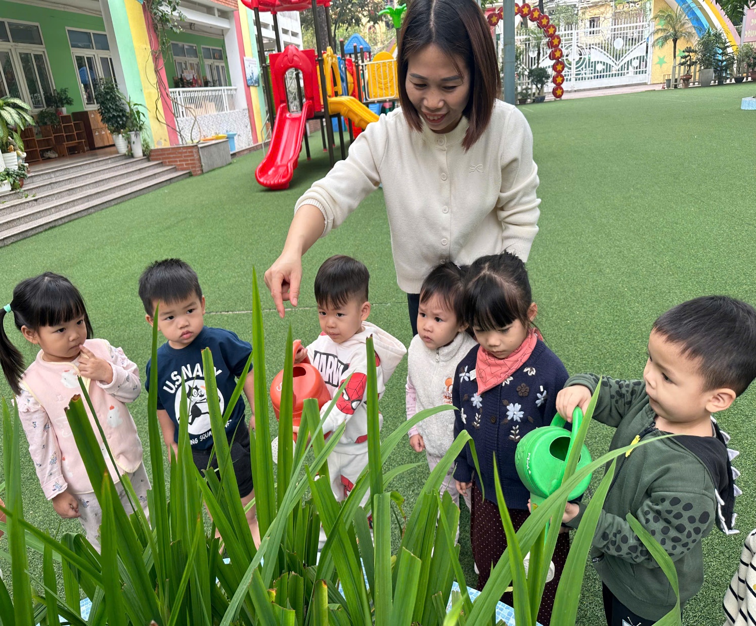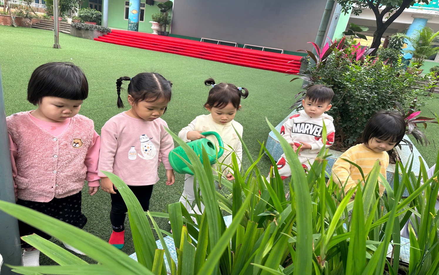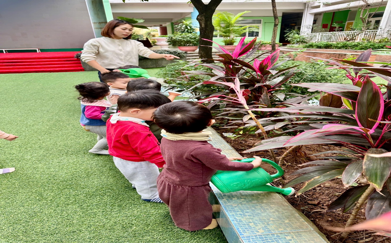 Thông qua các hoạt động thực hành, khám phá khoa học, kỹ năng sống như tưới cây, nhổ cỏ, nhặt lá khô… , trẻ hình thành tình yêu đối với môi trường sống và ý thức bảo vệ thiên nhiên xung quanh.