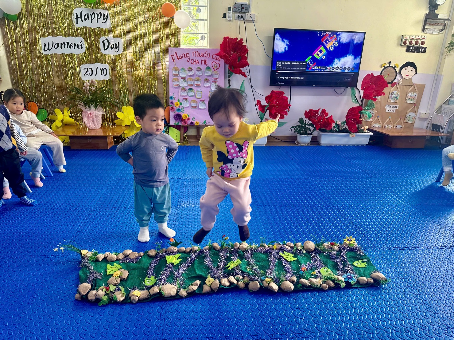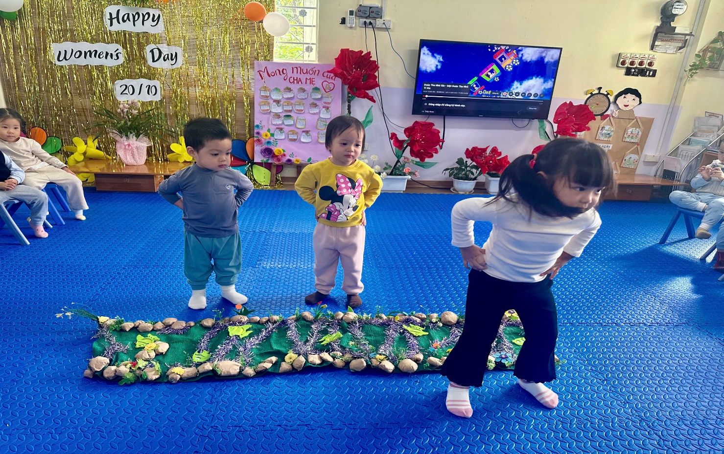 Sau đây là một số hình ảnh các bé lớp D2 trường Mầm non Thành Công trong giờ hoạt động phát triển thể chất.
