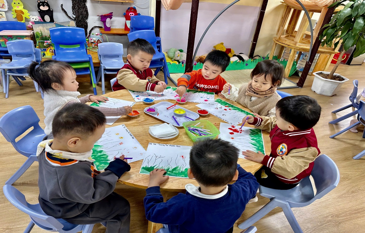 Sau đây là một số hình ảnh các bé nhà trẻ D2 trong giờ tạo hình.