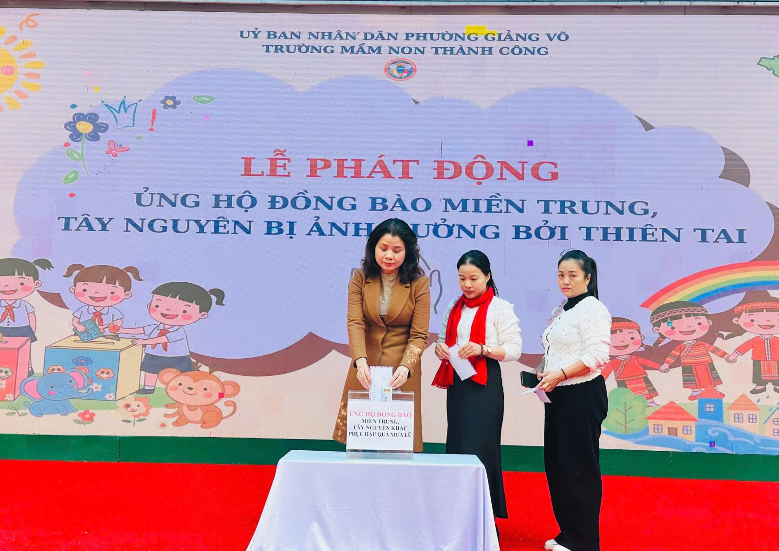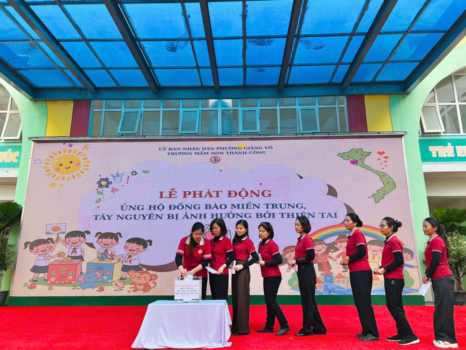 Ban giám hiệu Trường mầm non Thành Công gương mẫu tham gia quyên góp, chung tay ủng hộ