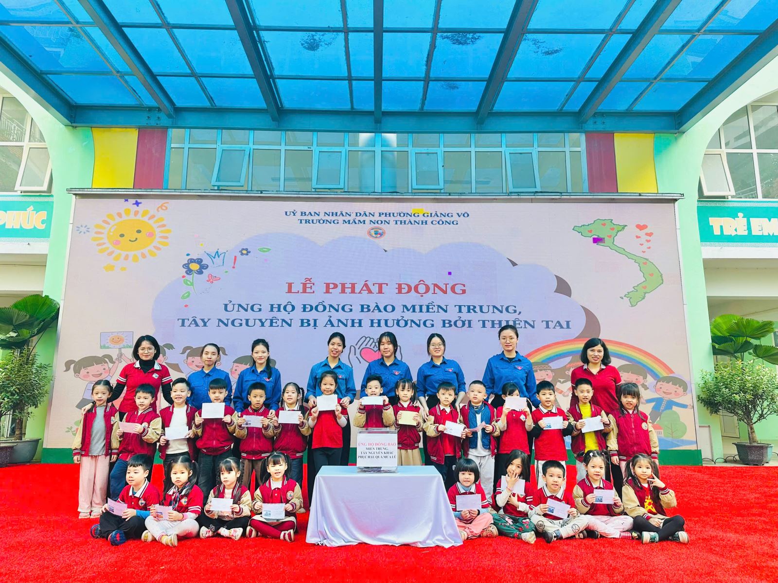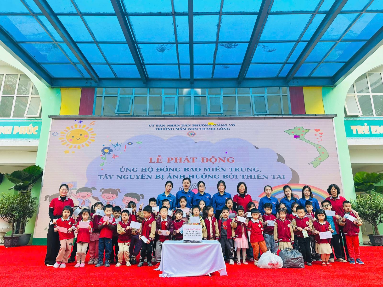 Trong những ngày qua, thiên tai liên tiếp gây ảnh hưởng nặng nề đến đời sống của nhiều gia đình. Nhằm giáo dục trẻ tinh thần “Lá lành đùm lá rách”, biết sẻ chia yêu thương, Trường Mầm non Thành Công kêu gọi toàn thể cán bộ, giáo viên, phụ huynh và các con học sinh cùng chung tay hỗ trợ những hoàn cảnh khó khăn.