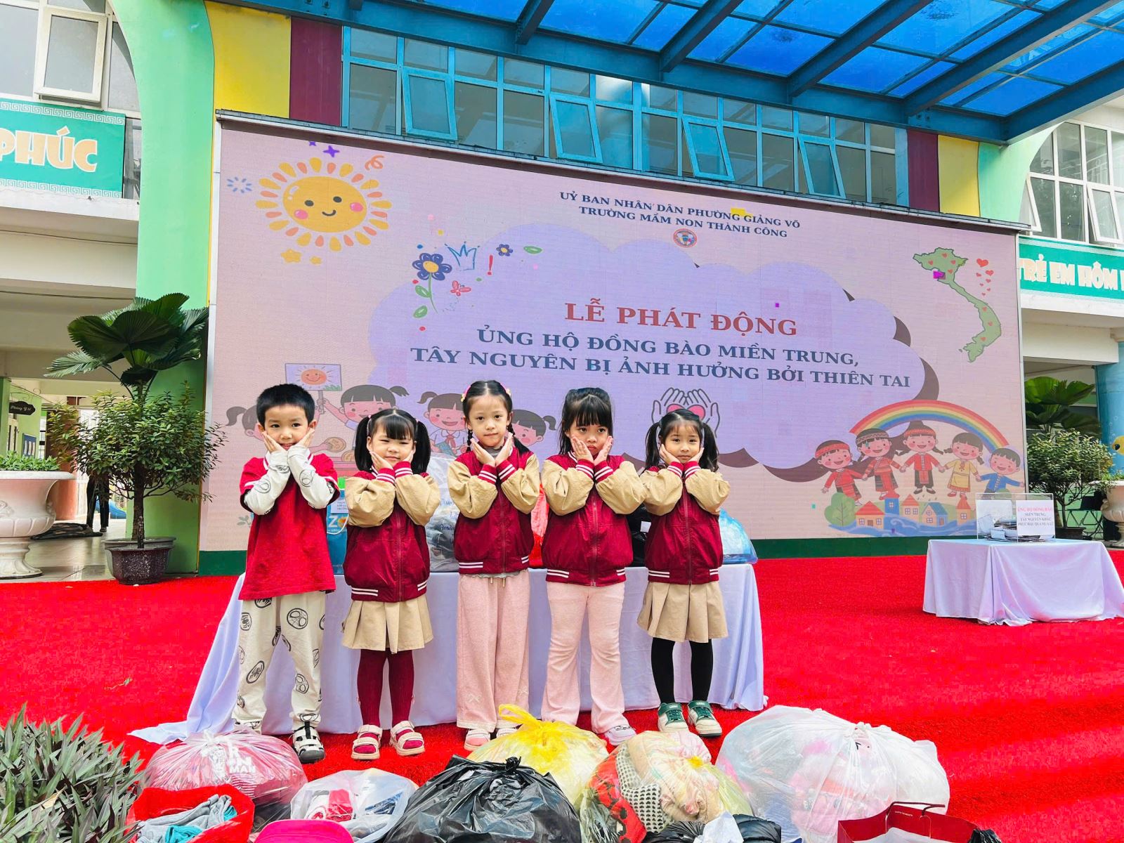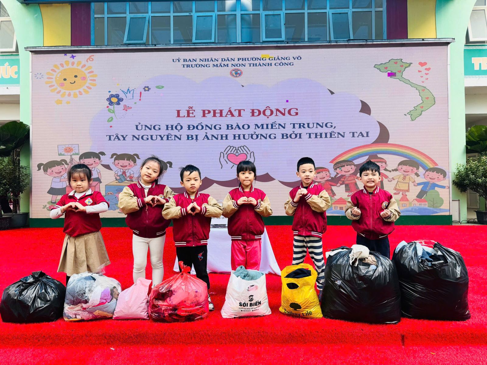 Không chỉ có các cô giáo và cán bộ nhà trường, các bé học sinh của Trường Mầm non Thành Công cũng tham gia hưởng ứng rất tích cực. Với tấm lòng thơ ngây nhưng tràn đầy yêu thương, các bé đã cùng bố mẹ chuẩn bị những phần quà nhỏ bé nhưng ý nghĩa để gửi tới đồng bào miền Trung – Tây Nguyên