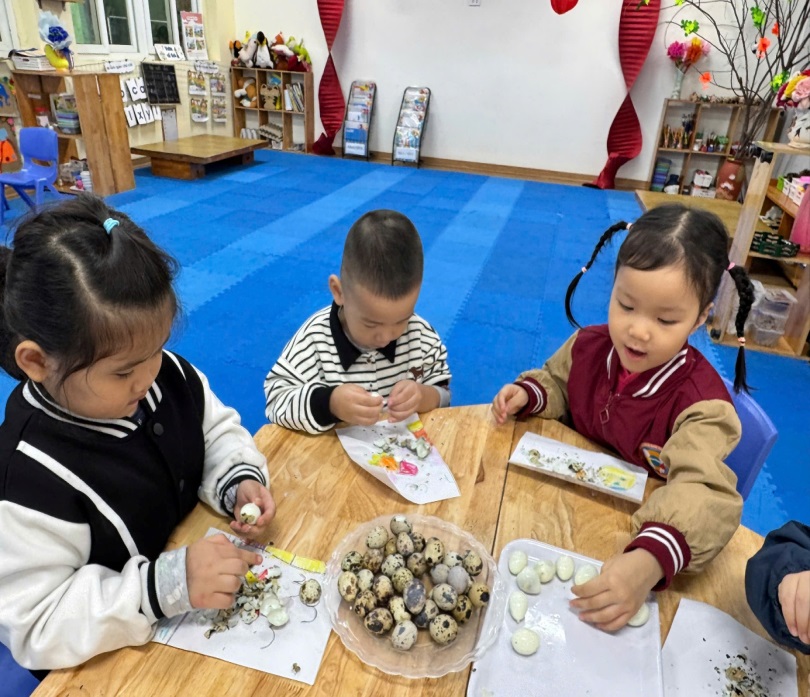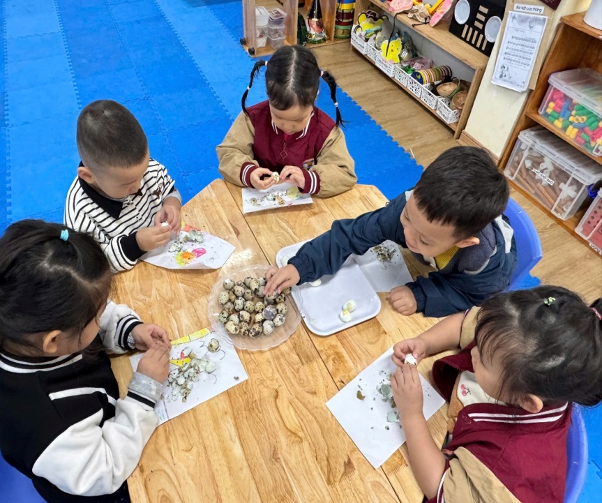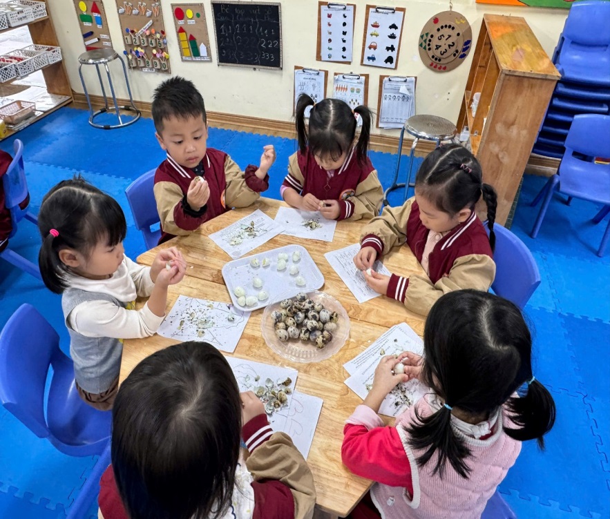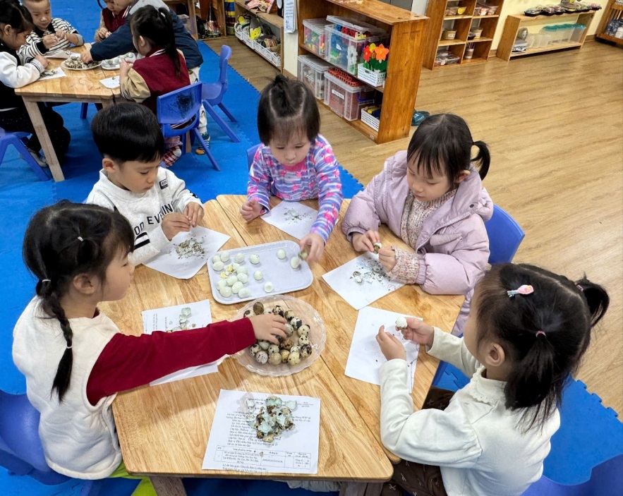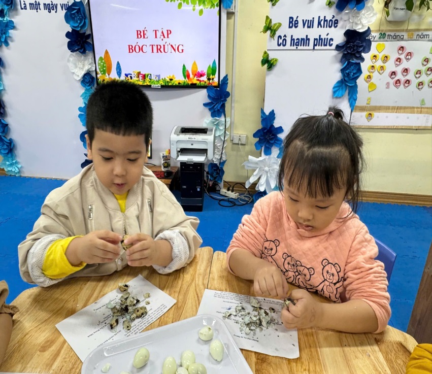 BÉ TRẢI NGHIỆM KỸ NĂNG BÓC TRỨNG CÚT