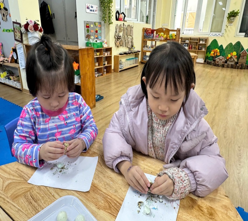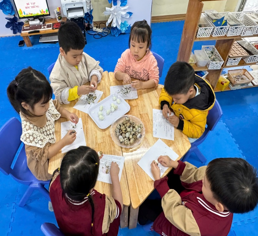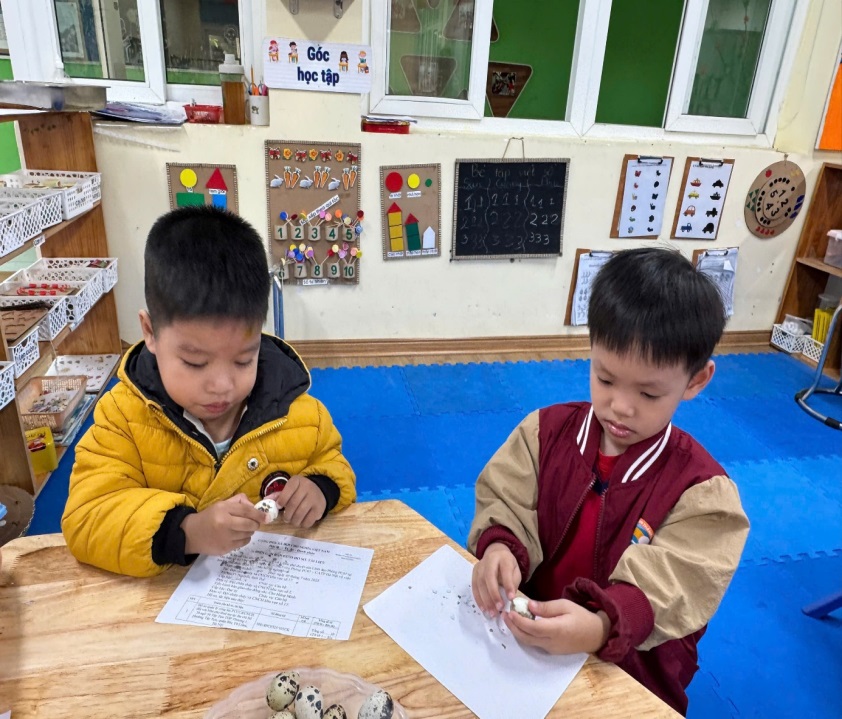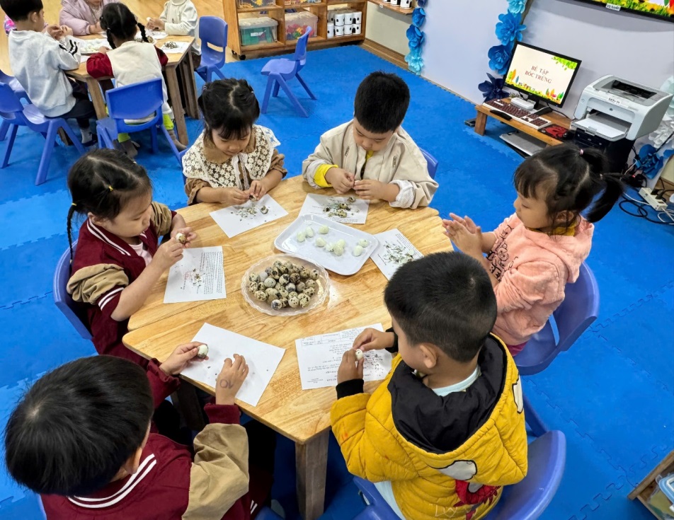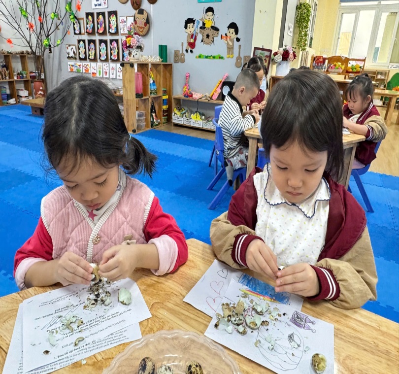 BÉ TRẢI NGHIỆM KỸ NĂNG BÓC TRỨNG CÚT