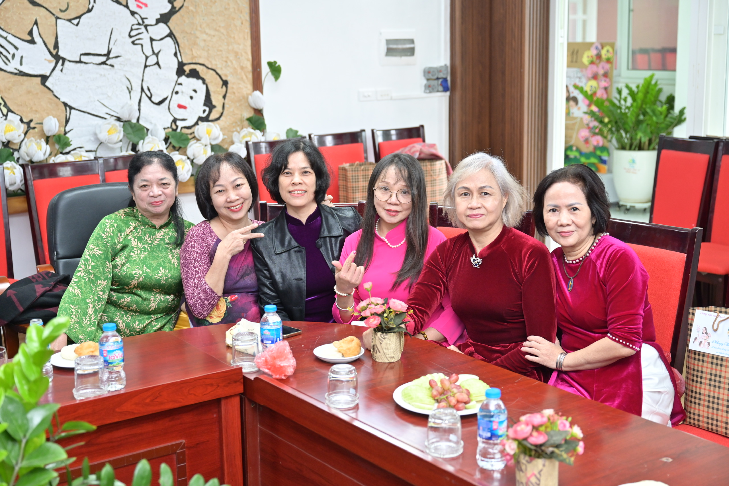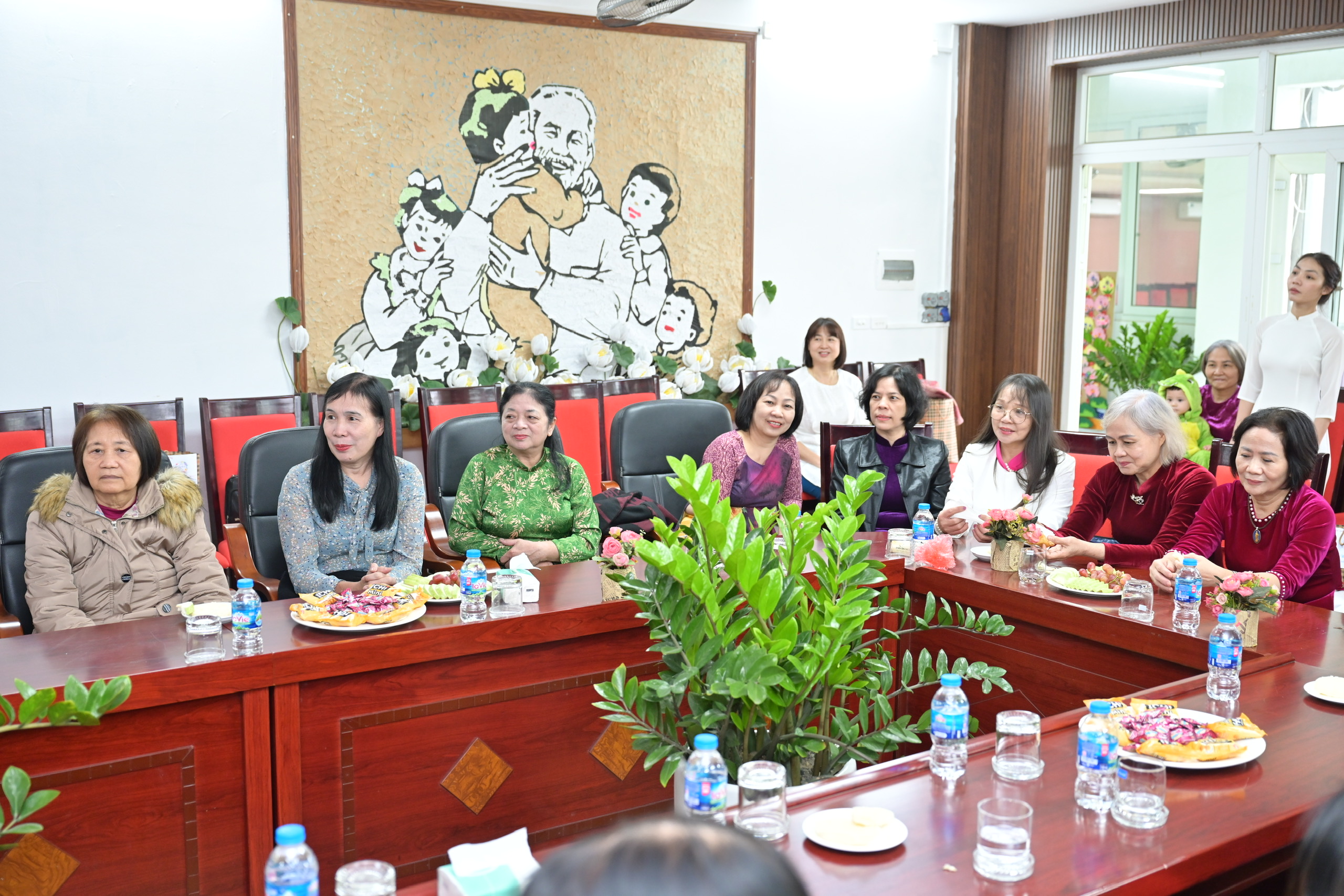 Các cô giáo hưu trí, Ban Giám hiệu và đội ngũ giáo viên hiện tại cùng nhau ghi lại những khoảnh khắc đáng nhớ – nơi nụ cười, ánh mắt đều ánh lên niềm vui của ngày trở về.