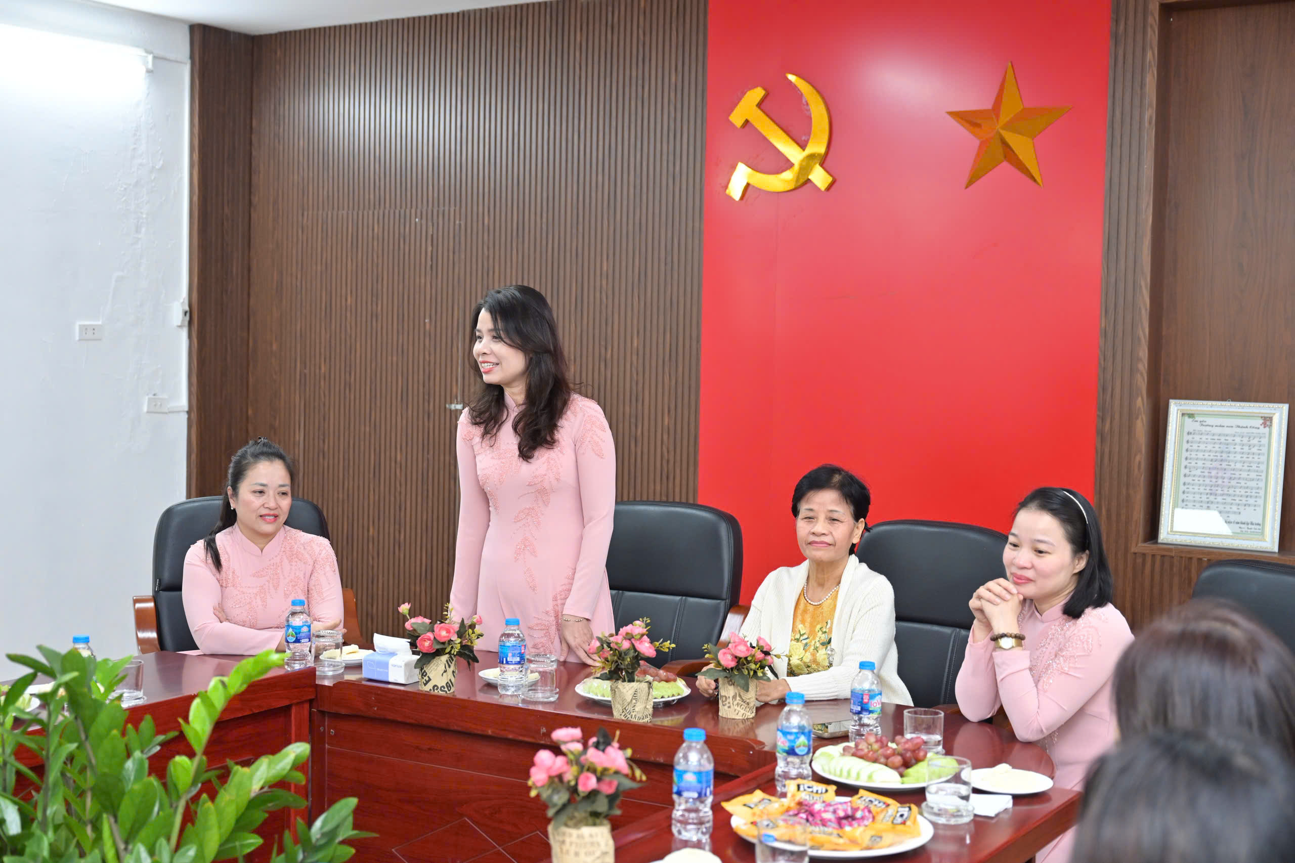 Thay mặt Ban giám hiệu, cô giáo Phùng Thị Bích Hiền - Bí thư chi bộ - Hiệu trưởng nhà trường gửi lời chào mừng nồng nhiệt tới các cô giáo đã nghỉ hưu. Cô bày tỏ lòng biết ơn sâu sắc trước những công sức mà các thế hệ cán bộ – giáo viên – nhân viên đã dành cho trường trong suốt chặng đường hình thành và phát triển.