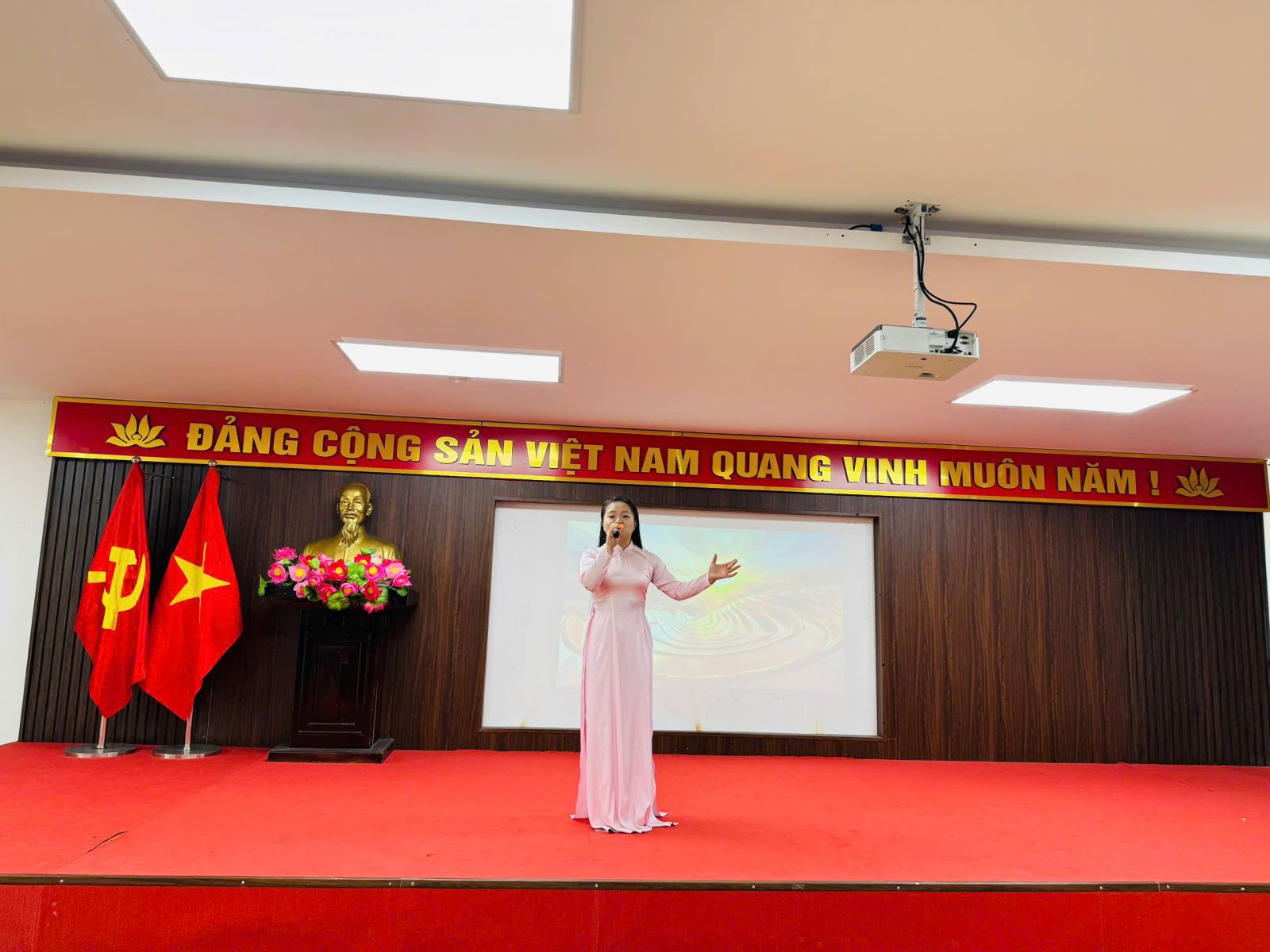 Trong không khí trang trọng, toàn thể đại biểu, cán bộ, giáo viên và sinh viên đã cùng thực hiện nghi lễ chào cờ, hát Quốc ca và Đoàn ca. Đây là khoảnh khắc thể hiện rõ nét tinh thần tự hào dân tộc và trách nhiệm của tuổi trẻ.
