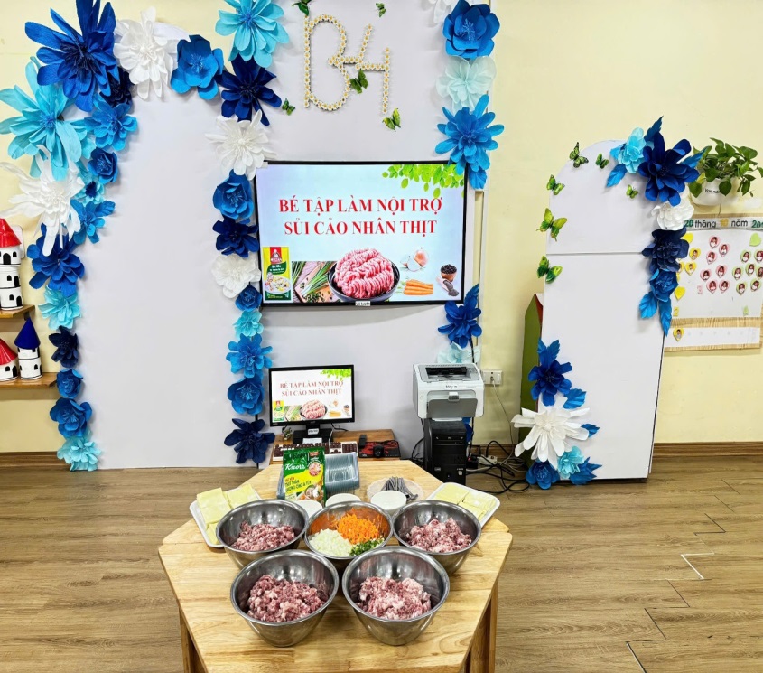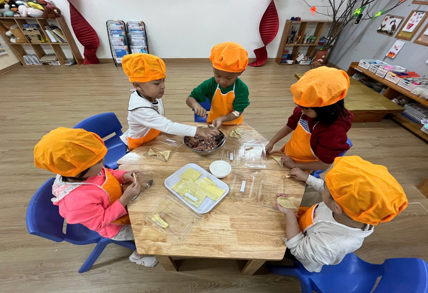 Thông qua hoạt động này, các con không những được rèn sự khéo léo của đôi tay mà còn biết được giá trị dinh dưỡng của món ăn