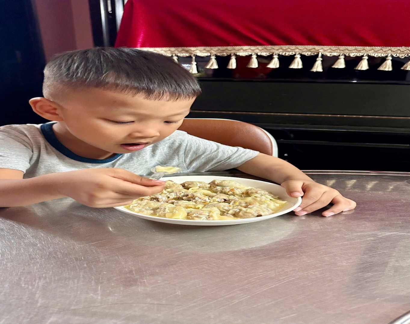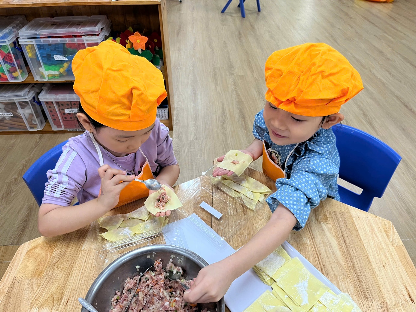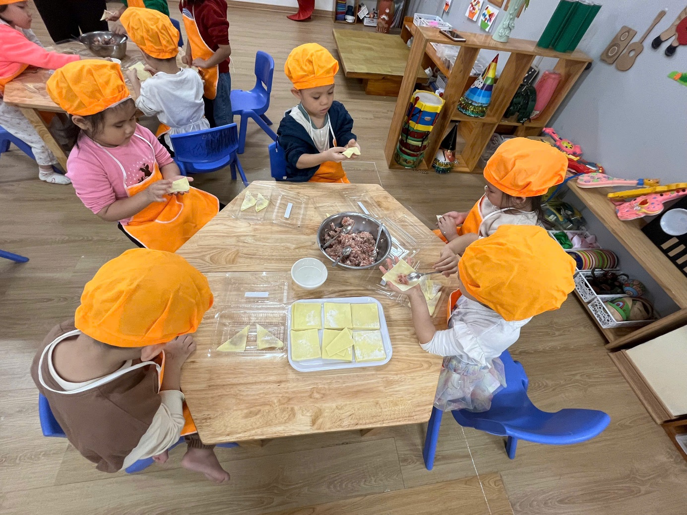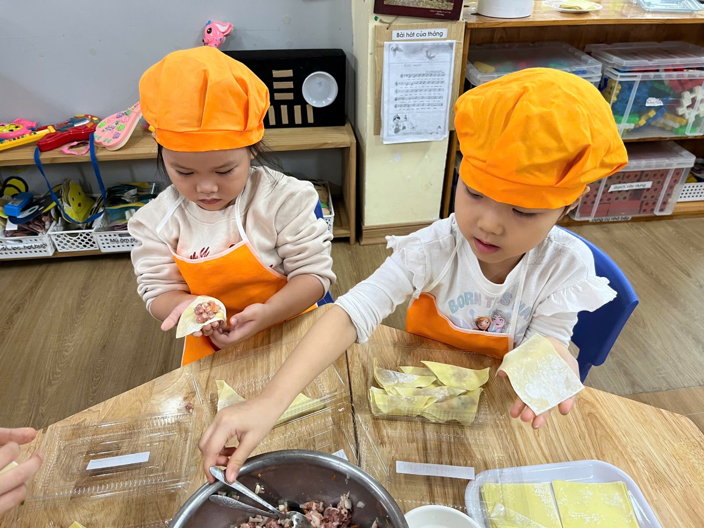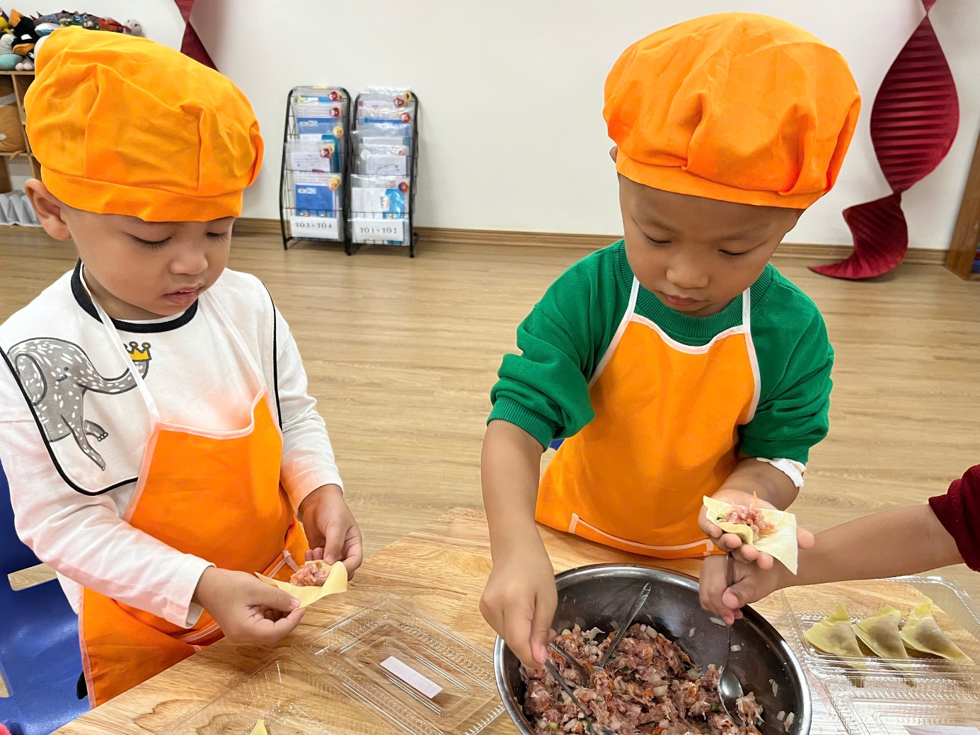Hôm nay, các đầu bếp nhí của lớp B4 đã có một buổi trải nghiệm đầy thú vị và bổ ích khi cùng nhau làm món sủi cảo. Các con được tự tay cho thịt, phết nước rồi gấp và dính lại để tạo thành những chiếc sủi cảo bé nhỏ, xinh xinh
