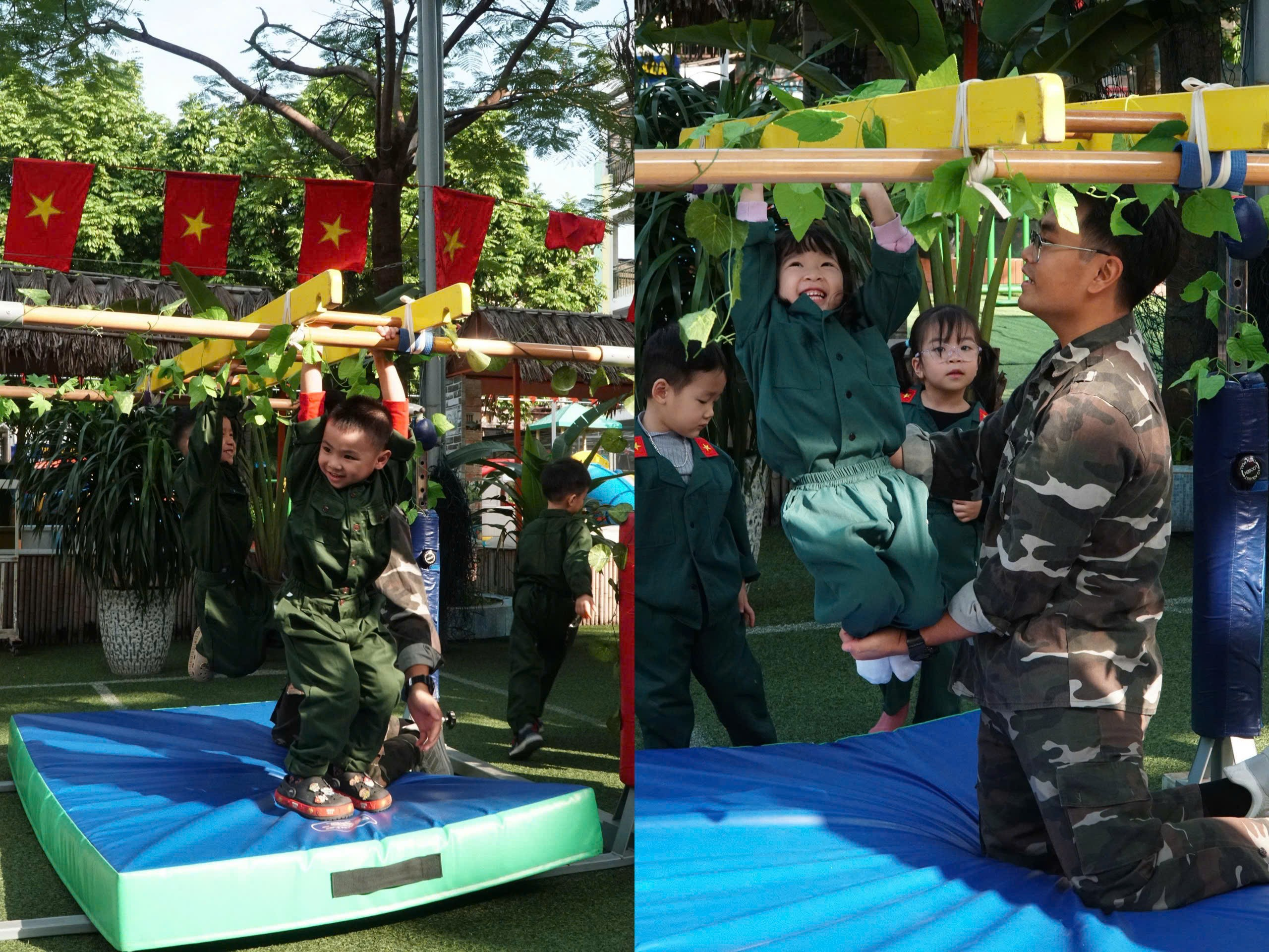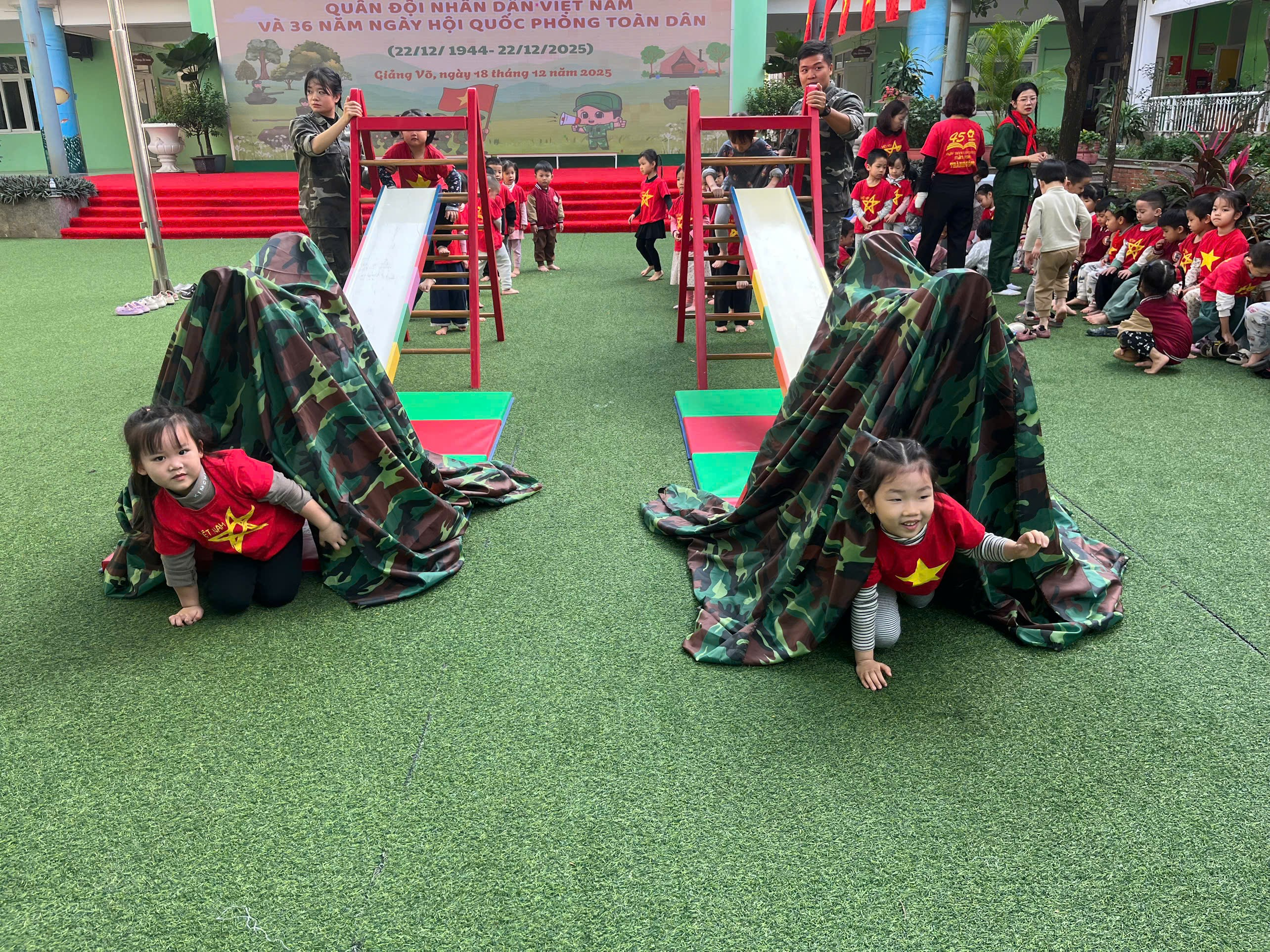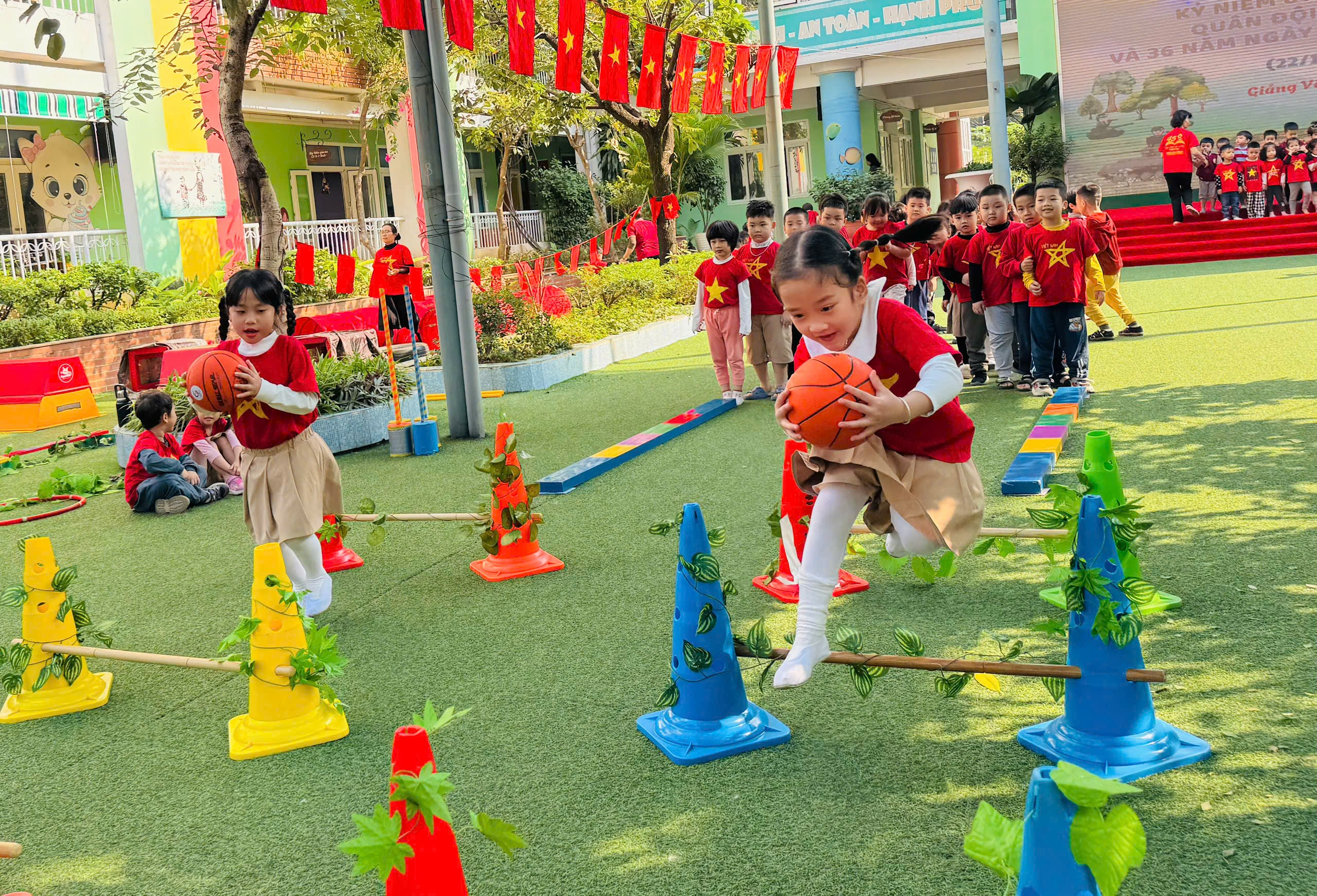 Các chiến sĩ nhí Trường Mầm non Thành Công đã được hòa mình vào không khí rộn ràng, ý nghĩa với những tiết mục văn nghệ đặc sắc đến từ các bạn nhỏ và các cô trong trường. Đặc biệt, các con còn được hóa trang thành những chú bộ đội thật đáng yêu và tham gia liên hoàn vận động vô cùng hấp dẫn.