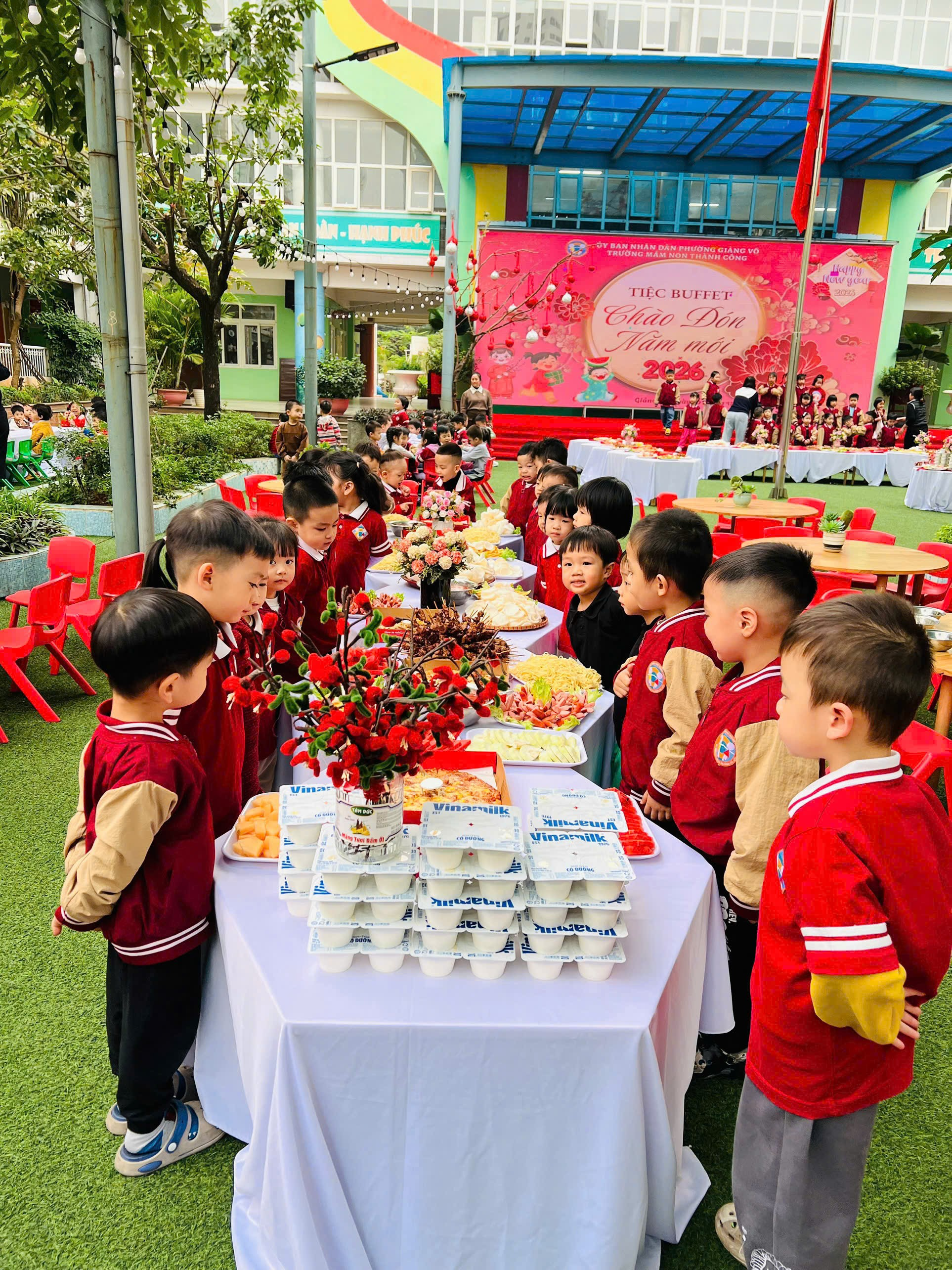Sáng ngày 30/12, Trường Mầm non Thành Công đã tổ chức Tiệc buffet chào mừng năm mới 2026 dành cho các bé trong toàn trường. Đây là một hoạt động trải nghiệm thiết thực và ý nghĩa, mang đến cho trẻ những giây phút vui tươi, hào hứng, đồng thời tạo cơ hội để các con được rèn luyện và hình thành nhiều kỹ năng sống cần thiết thông qua hoạt động thực tế.