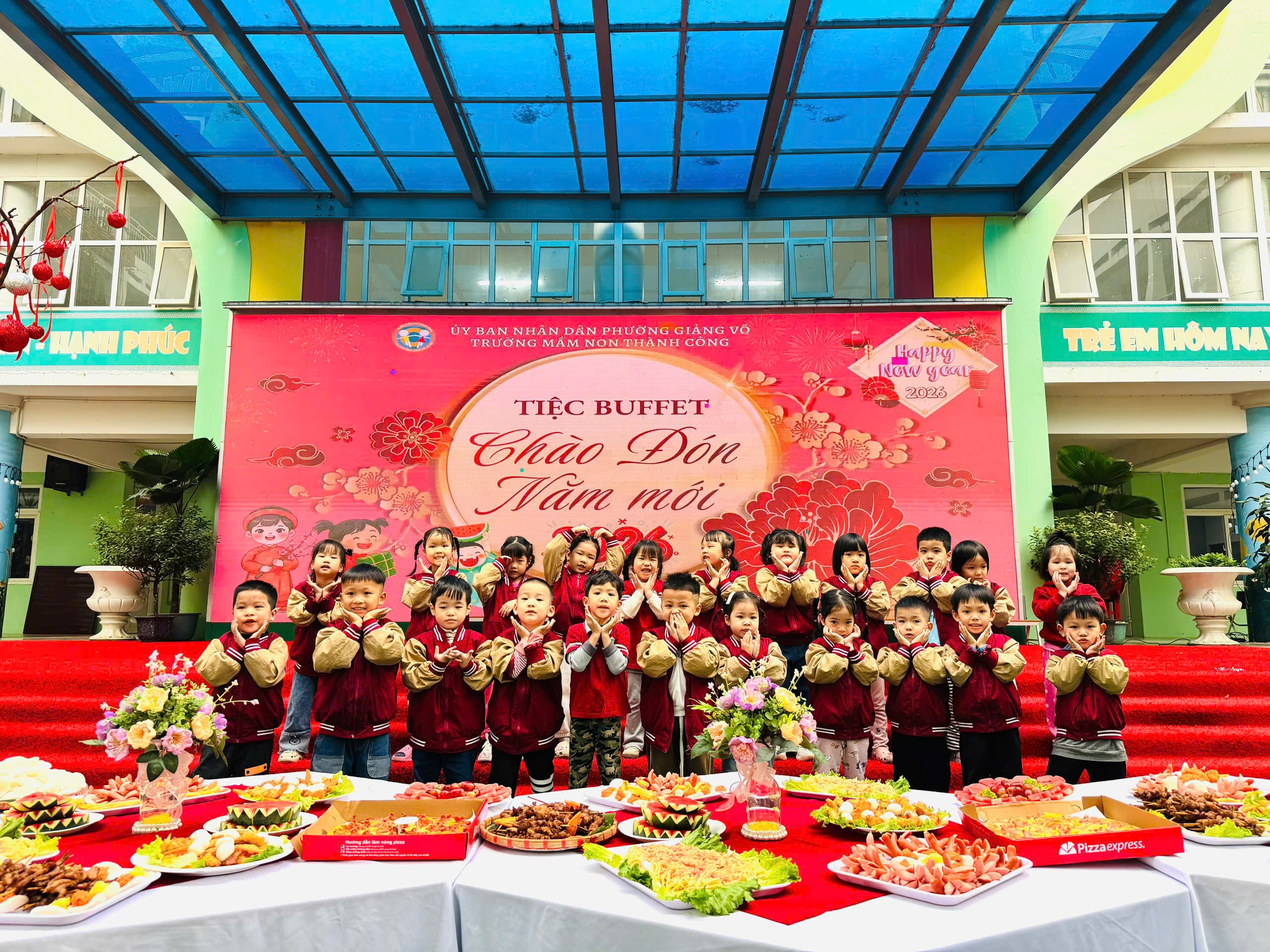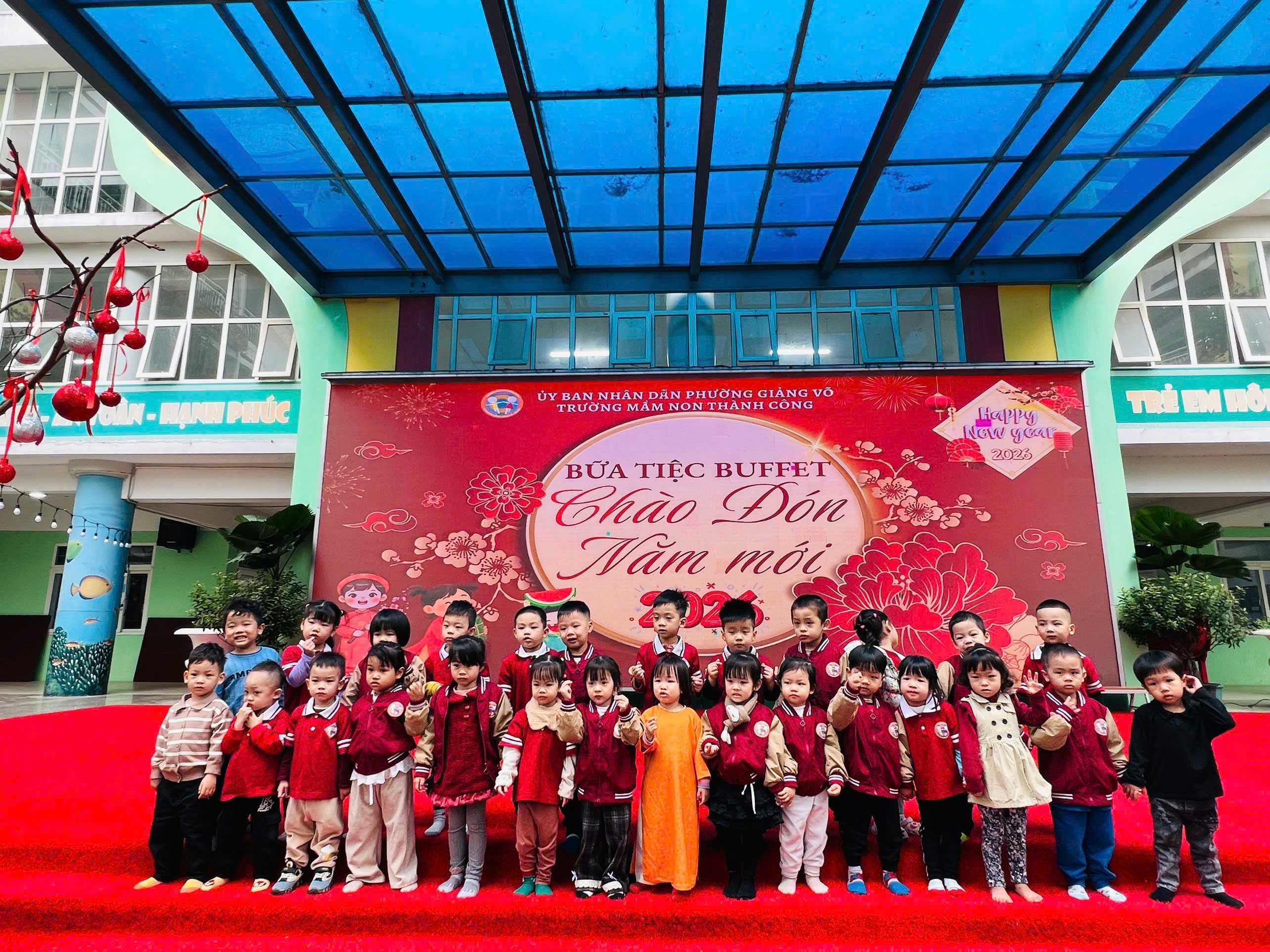 Nhà trường kính chúc các con luôn mạnh khỏe, chăm ngoan, tự tin, ăn ngon – ngủ tốt – hoạt bát, phát triển toàn diện cả thể chất lẫn kỹ năng. Đồng thời, Trường Mầm non Thành Công xin gửi tới quý phụ huynh lời chúc sức khỏe dồi dào, hạnh phúc, bình an, công việc thuận lợi và gia đình luôn ấm áp trong năm mới.