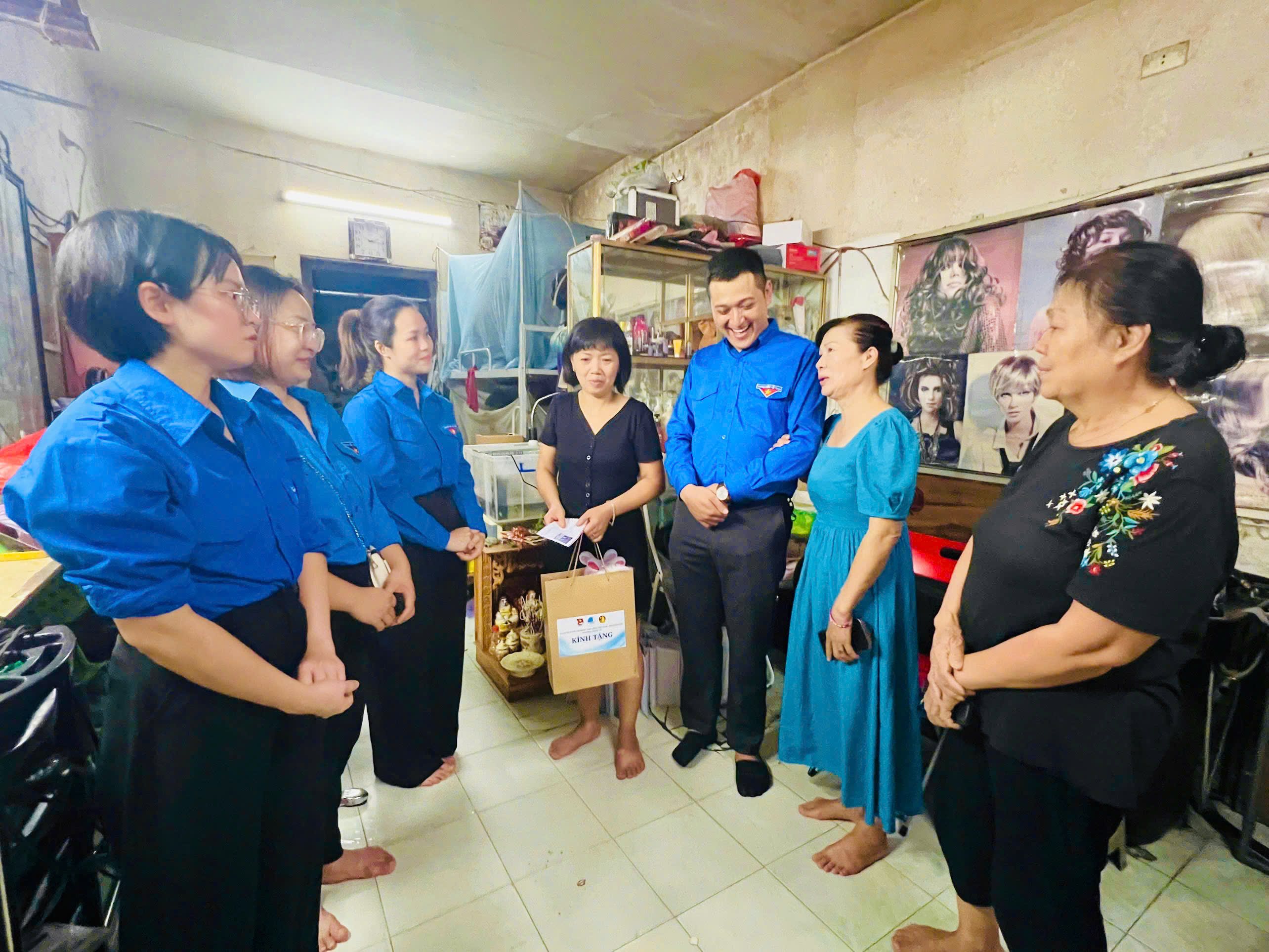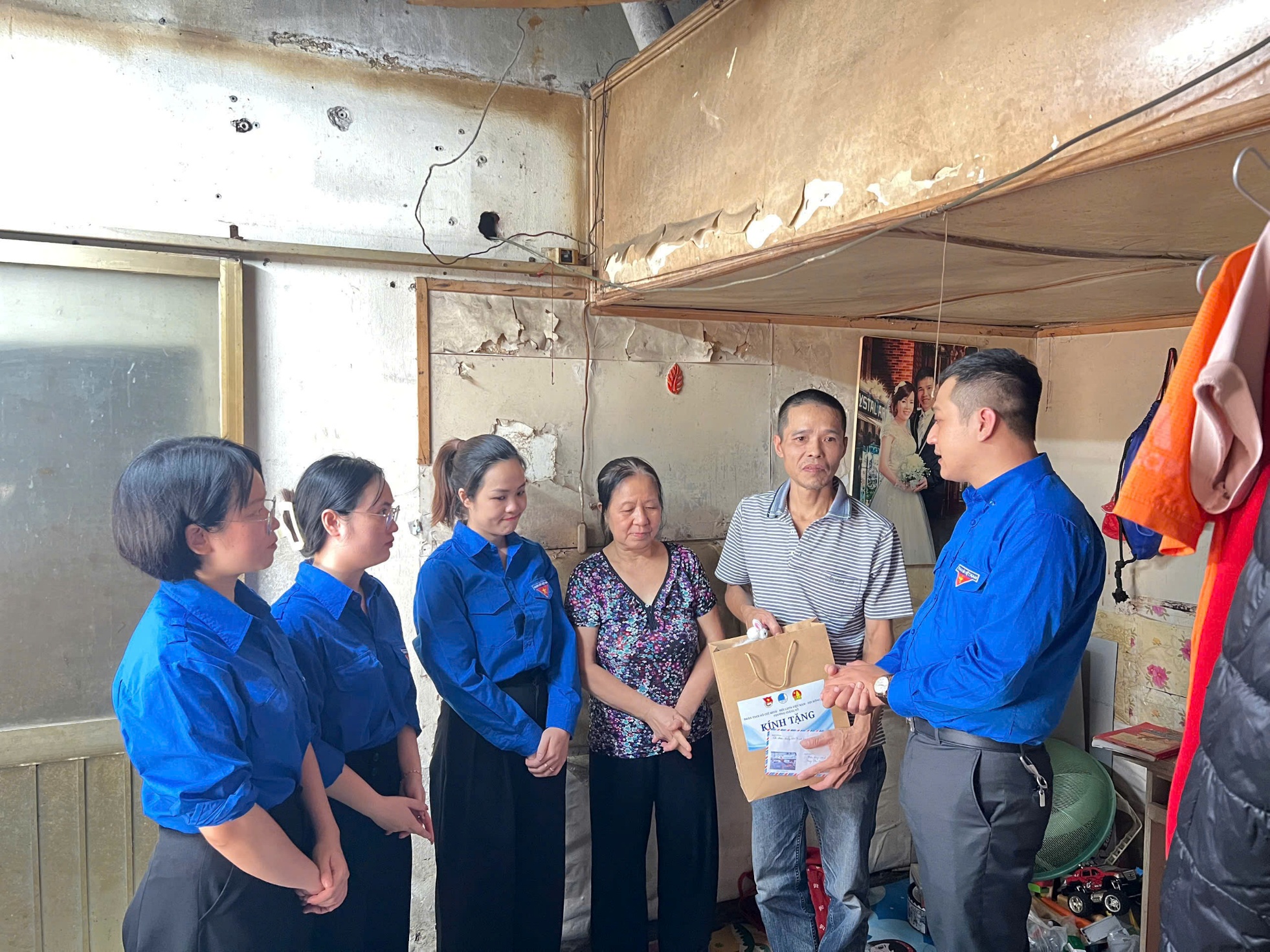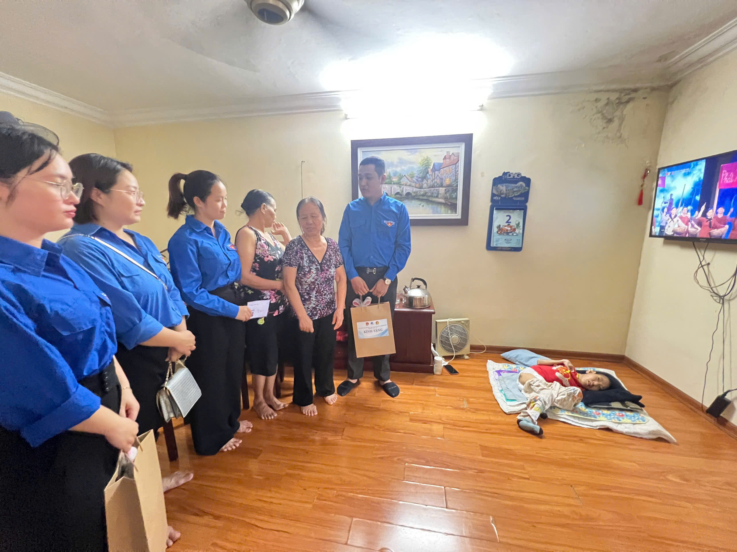 Các cô và đại diện Chi đoàn ân cần thăm hỏi, động viên các gia đình có hoàn cảnh khó khăn, gửi gắm chút quà nhỏ thay lời sẻ chia