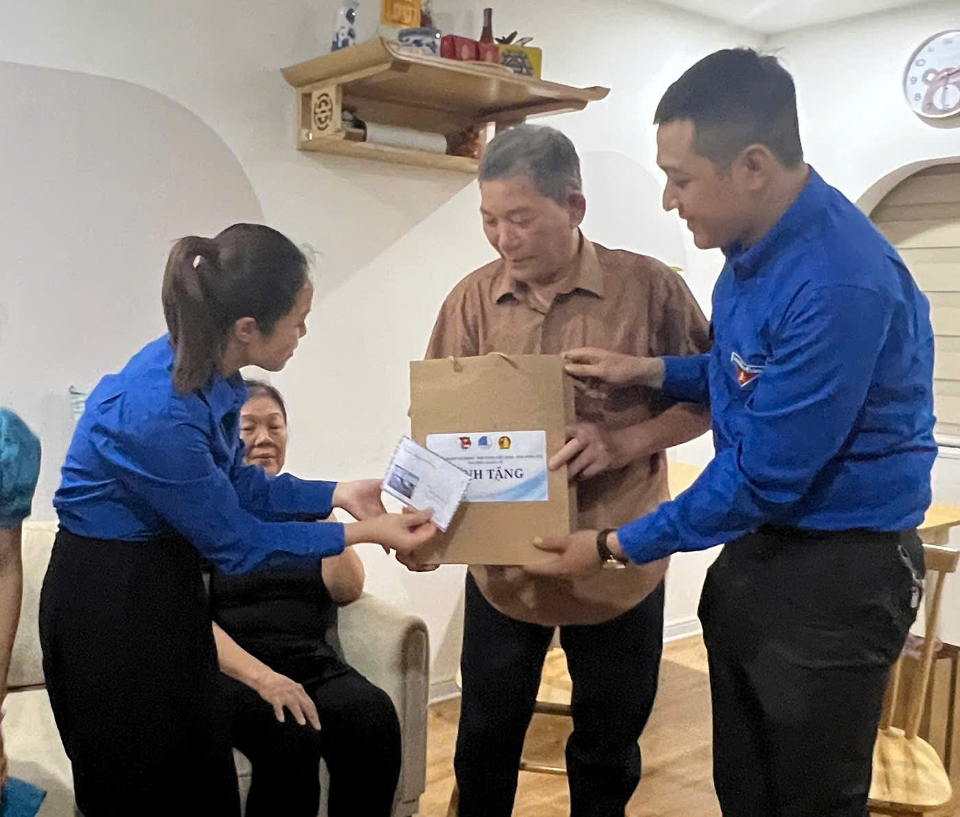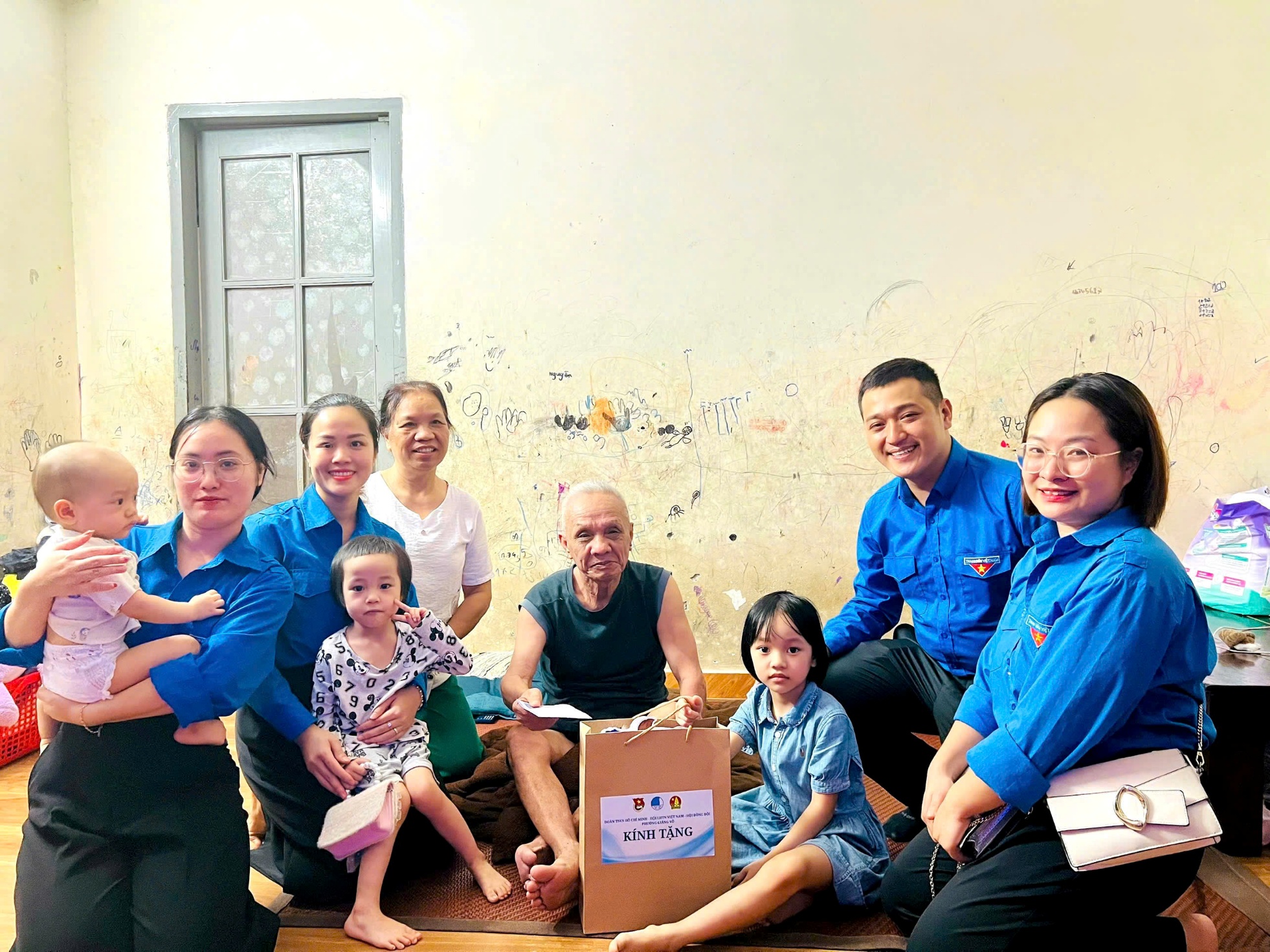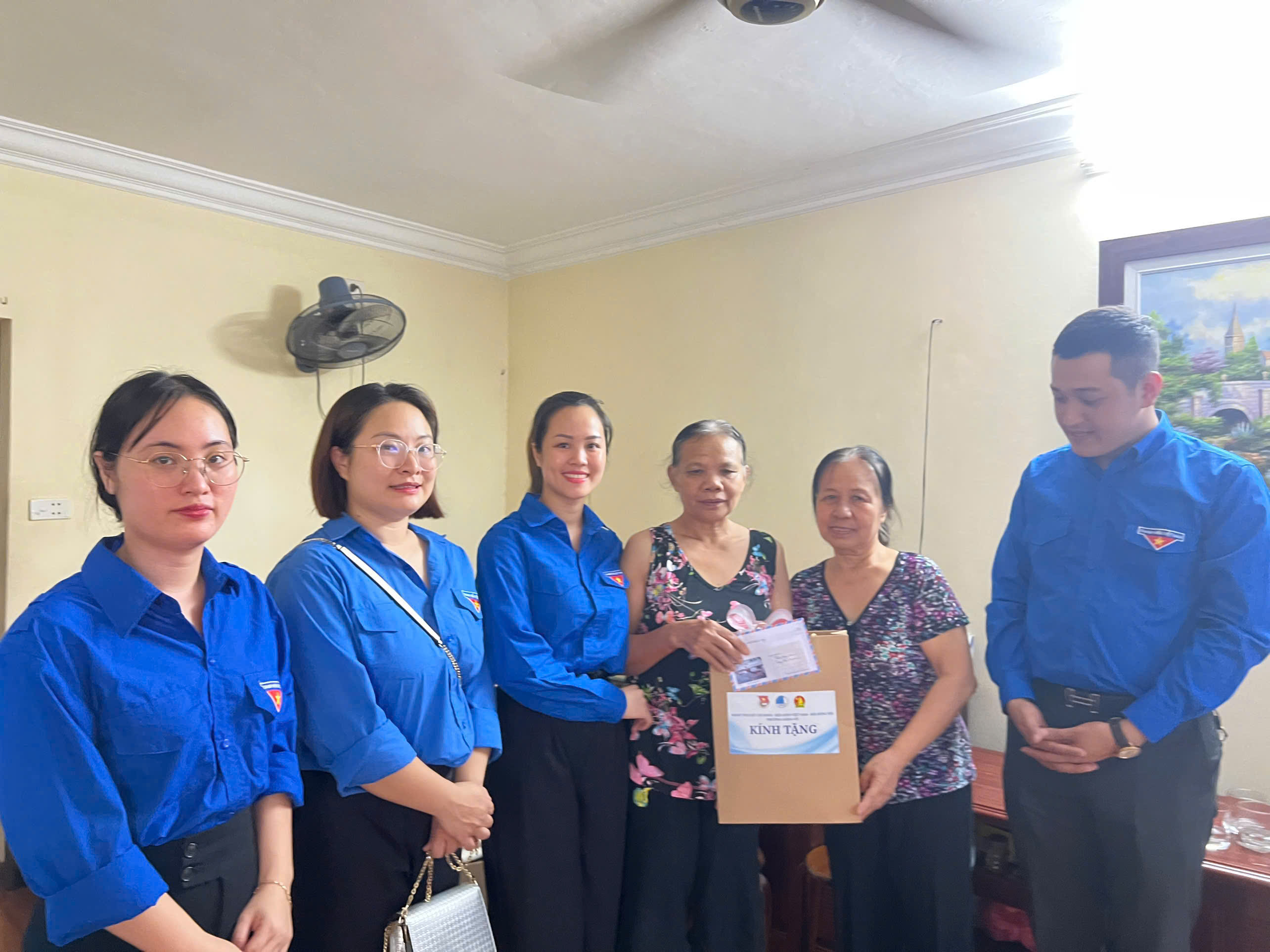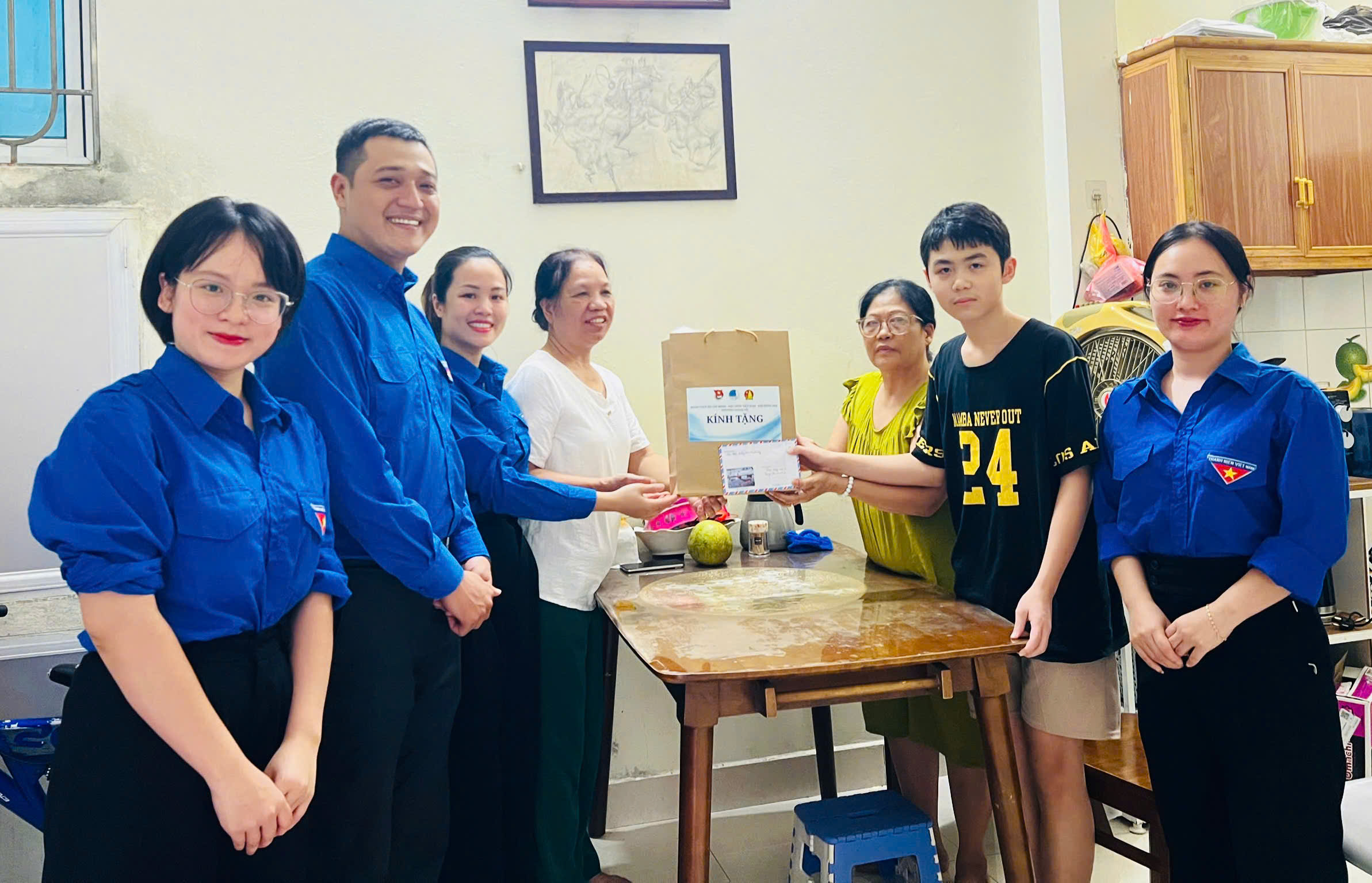 Các cô và đại diện Chi đoàn ân cần thăm hỏi, động viên các gia đình có hoàn cảnh khó khăn, gửi gắm chút quà nhỏ thay lời sẻ chia