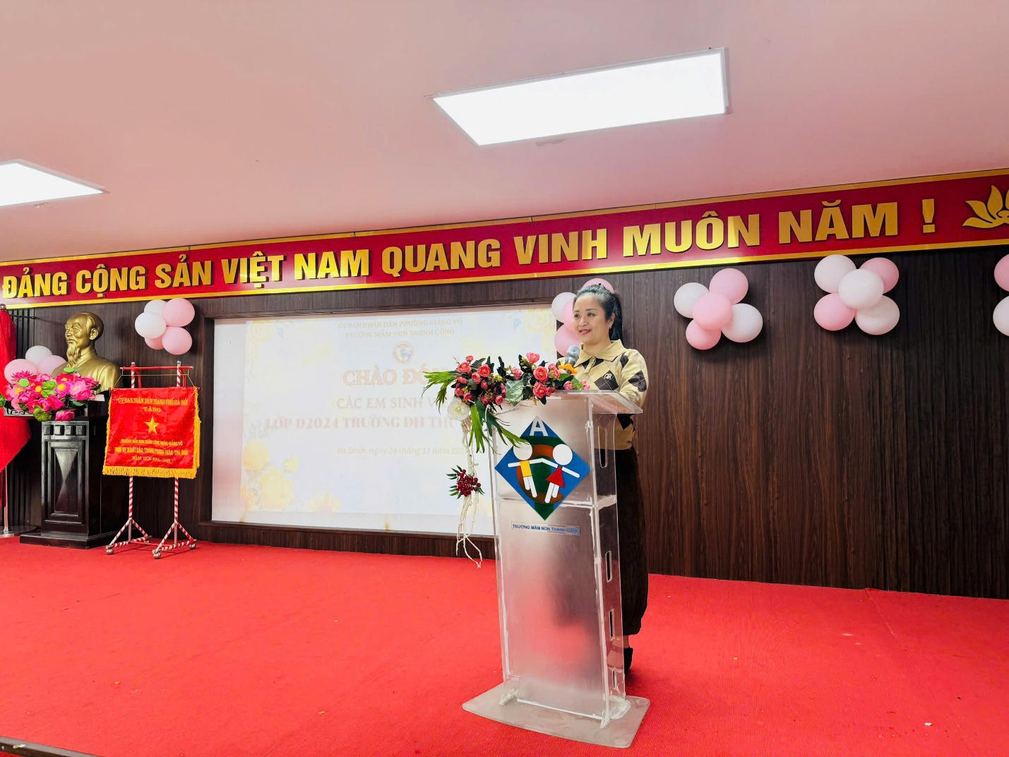 Đại diện Ban Giám hiệu, cô giáo Bùi Quế Lan Hương - Phó Bí thư Chi bộ - Phó Hiệu trưởng nhà trường đã giới thiệu đặc điểm, tình hình của nhà trường. Cô giáo Nguyễn Ngọc Huyền - Phó Hiệu trưởng nhà trường triển khai các hoạt động chuyên môn đáp ứng với nhu cầu thực tập của các em sinh viên, và bày tỏ mong muốn các em sẽ tích lũy được nhiều kinh nghiệm, rèn luyện kỹ năng và đạt kết quả tốt trong đợt thực tập này.