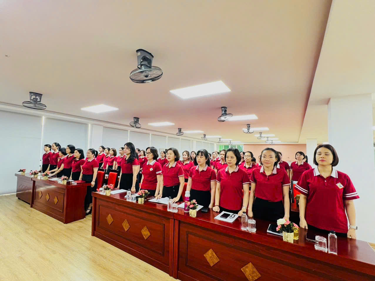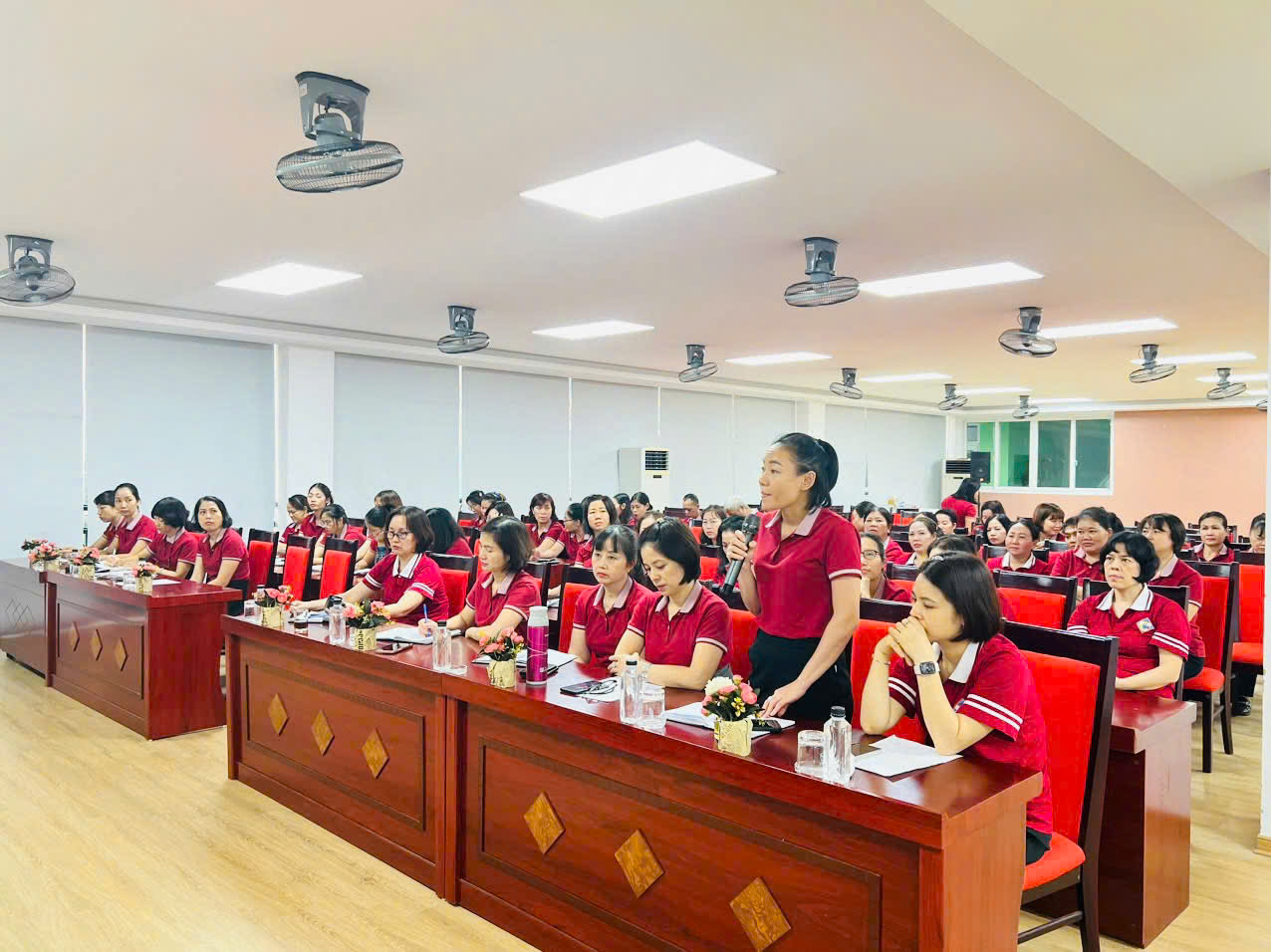 100% Cán bộ - Giáo viên – Nhân viên nhà trường tham gia Hội nghị với tâm thế nghiêm túc.