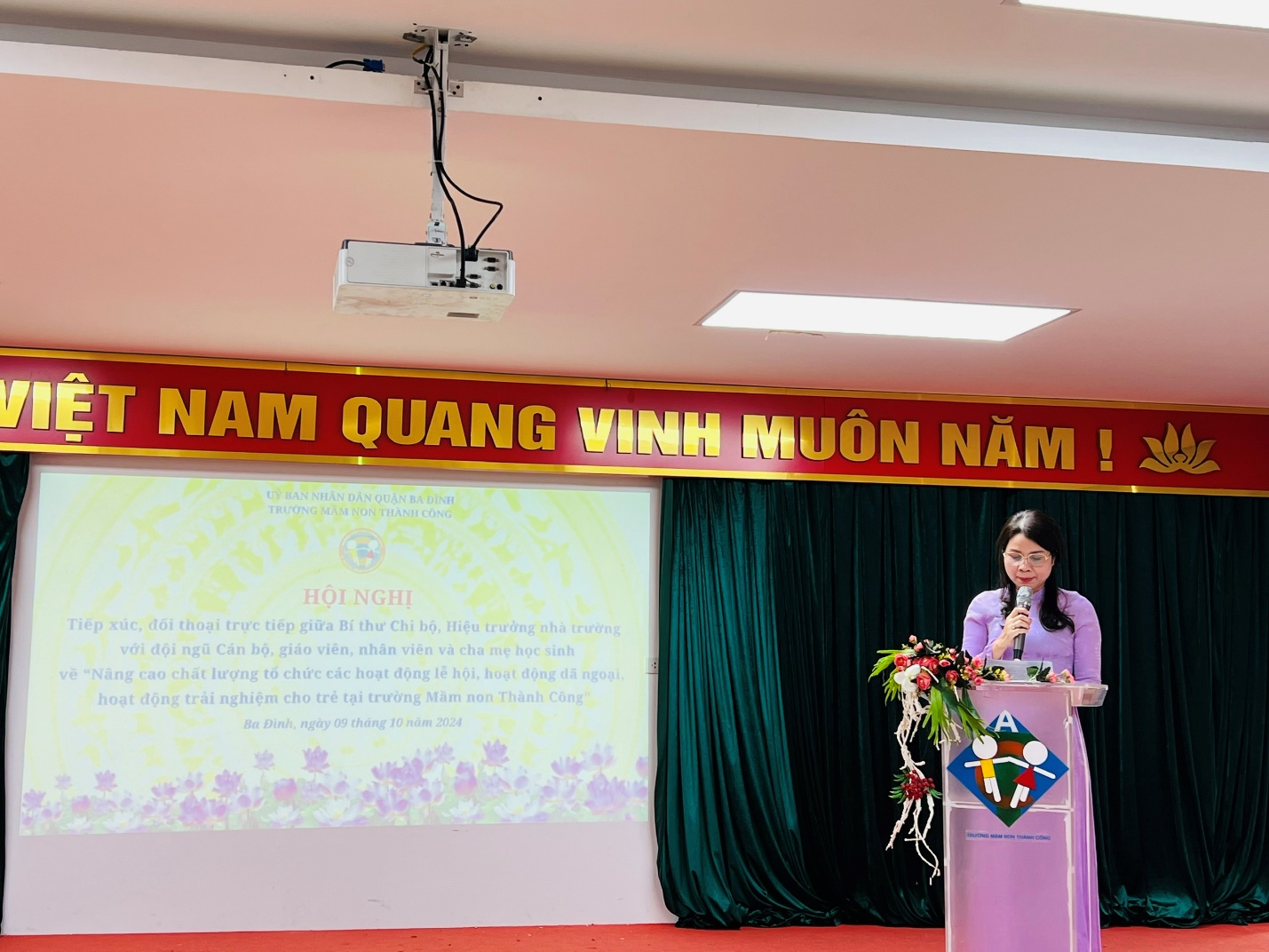 Trong không khí thắng thắn, cởi mở và xây dựng, tại buổi tiếp xúc đối thoại các ý kiến tập trung xoay quanh các vấn đề về “Nâng cao chất lượng tổ chức các hoạt động lễ hội, hoạt động dã ngoại hoạt động trải nghiệm cho trẻ tại trường năm học 2024-2025”
