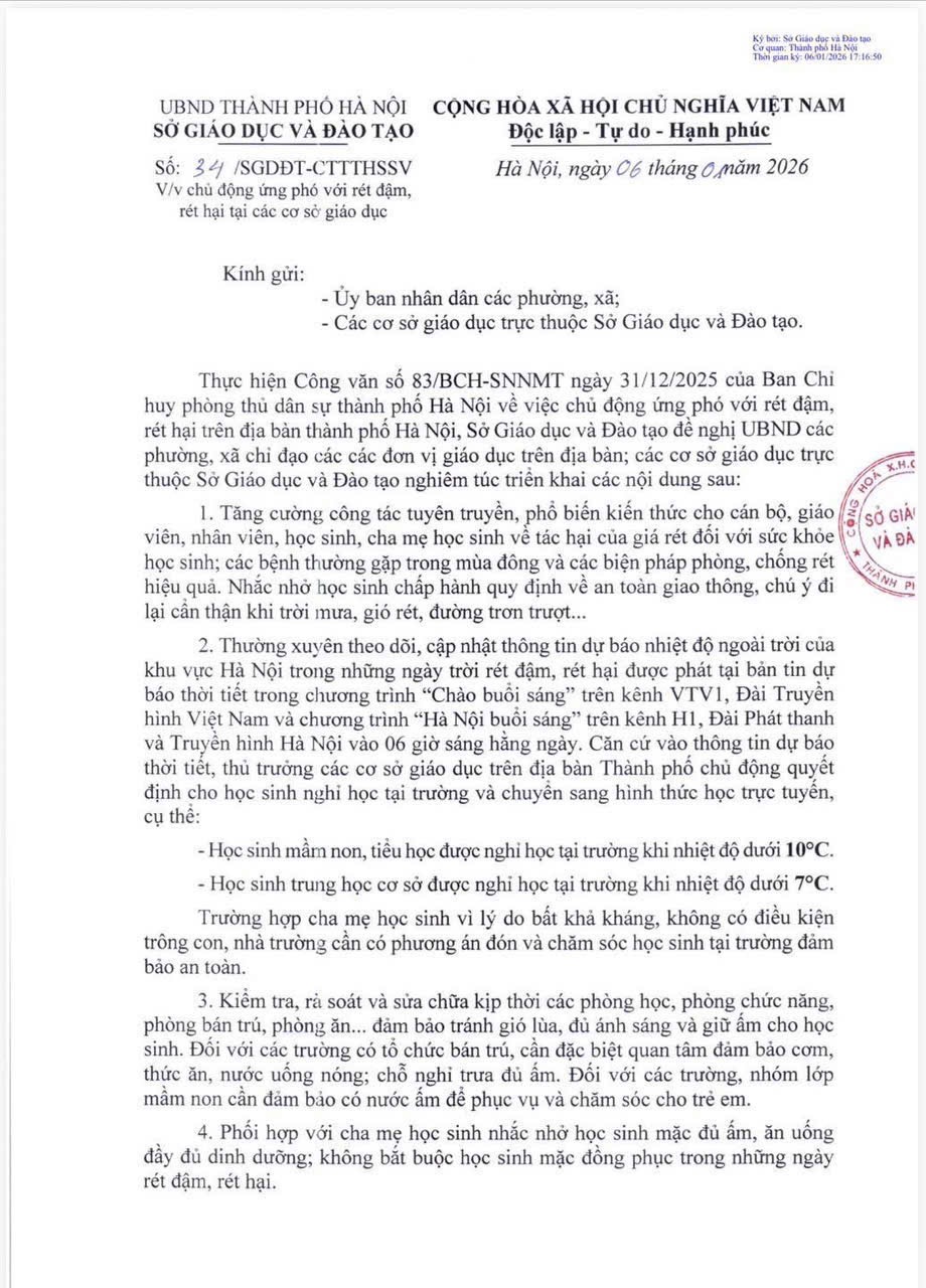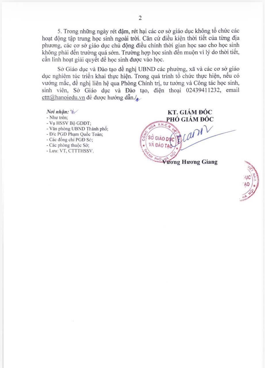 Văn bản chỉ đạo về việc Chủ động ứng phó với rét đậm, rét hại tại các cơ sở giáo dục