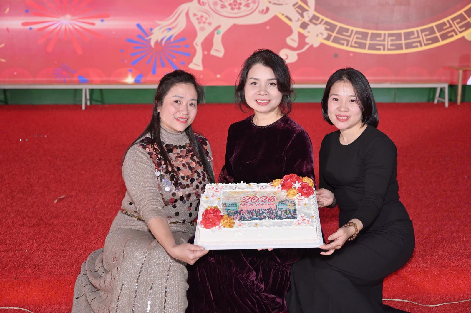 Ban giám hiệu cùng Chiếc bánh kem “Happy New Year 2026” – biểu trưng cho lời chúc năm mới an lành,