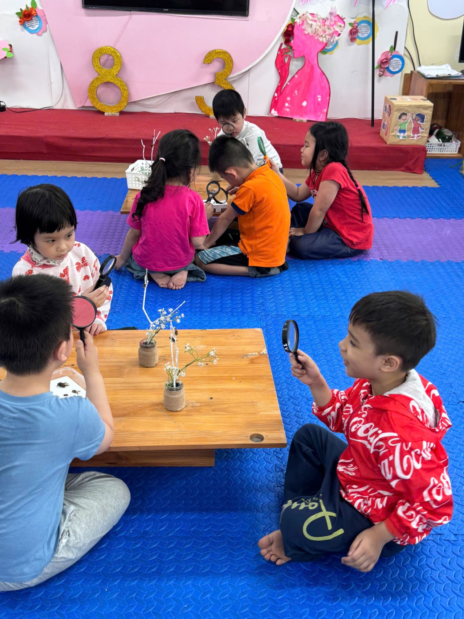 Hôm nay, các con lớp A4 đã có một buổi học thật hào hứng khi được sử dụng kính lúp để khám phá tiêu bản của những bạn ong 🐝