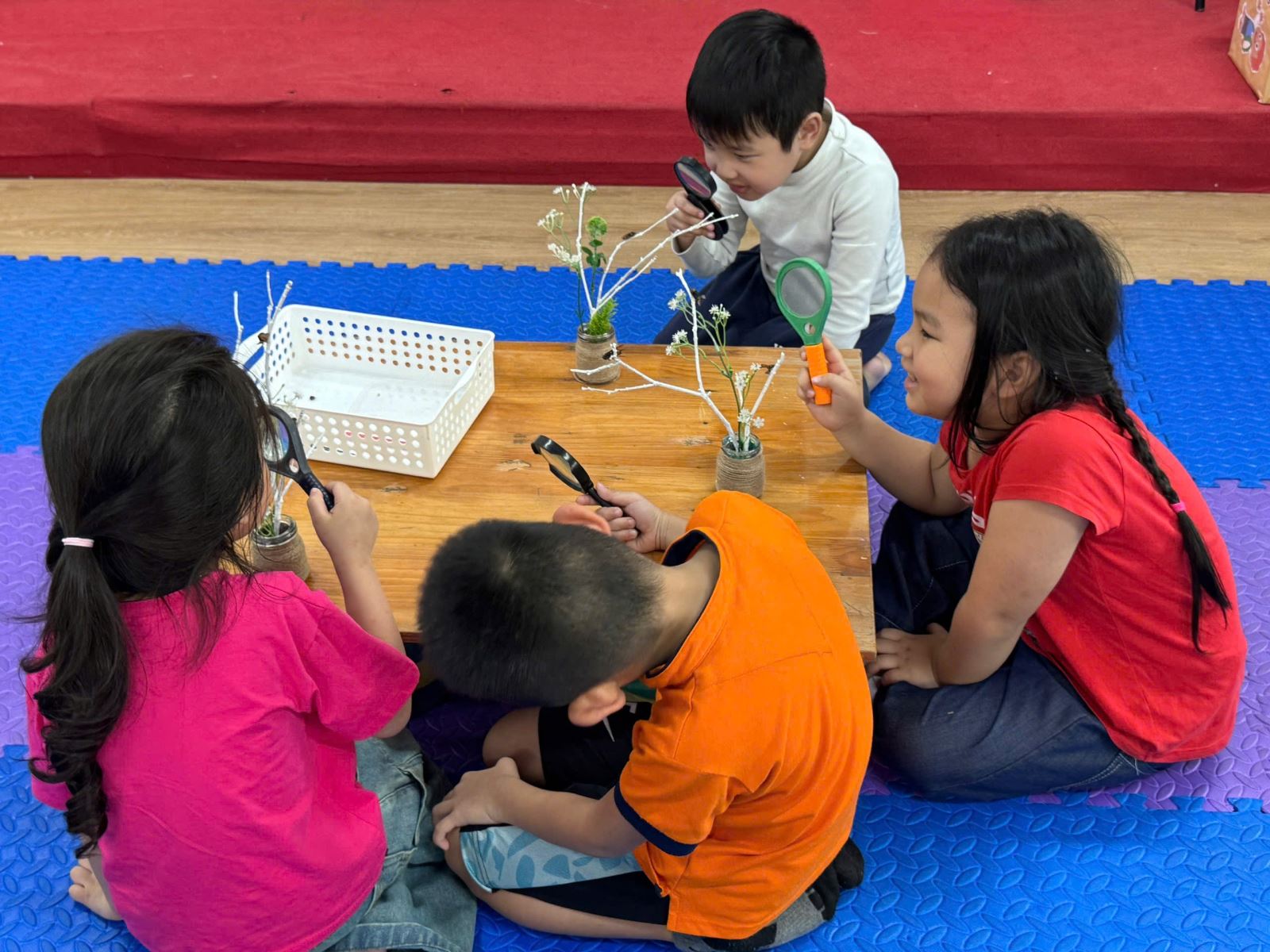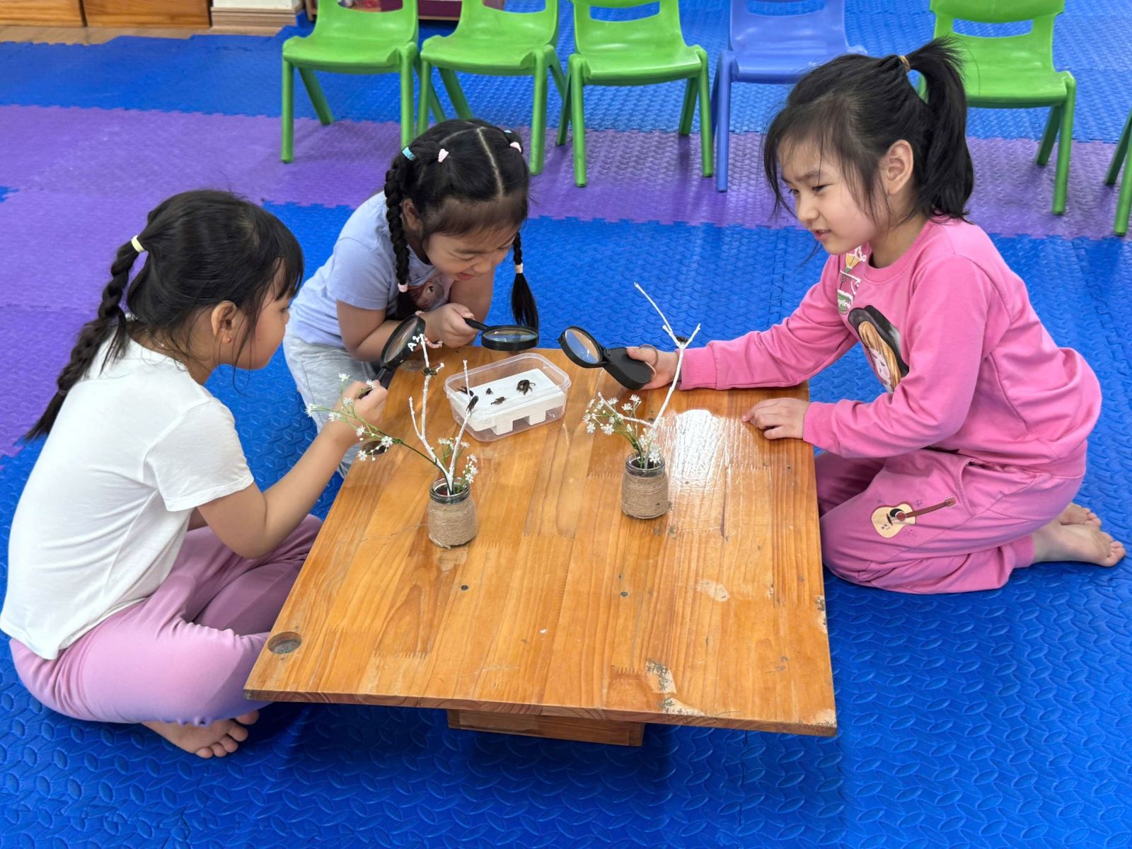 ✨ Các con được tự tay cầm kính lúp, quan sát thật kỹ từng chi tiết của con ong✨ Nhận biết các bộ phận như: đầu, thân, cánh, chân…✨ Thích thú khi nhìn thấy rõ hơn những điều nhỏ bé mà mắt thường khó thấy.