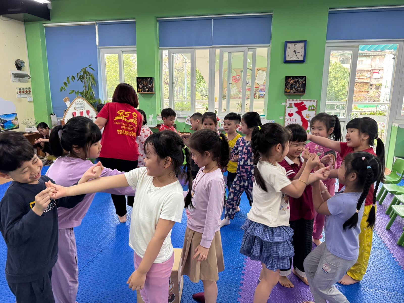 Không dừng lại ở đó, các con còn được tham gia những trò chơi vui nhộn, cùng nhau cười vui, gắn kết qua từng hoạt động.
