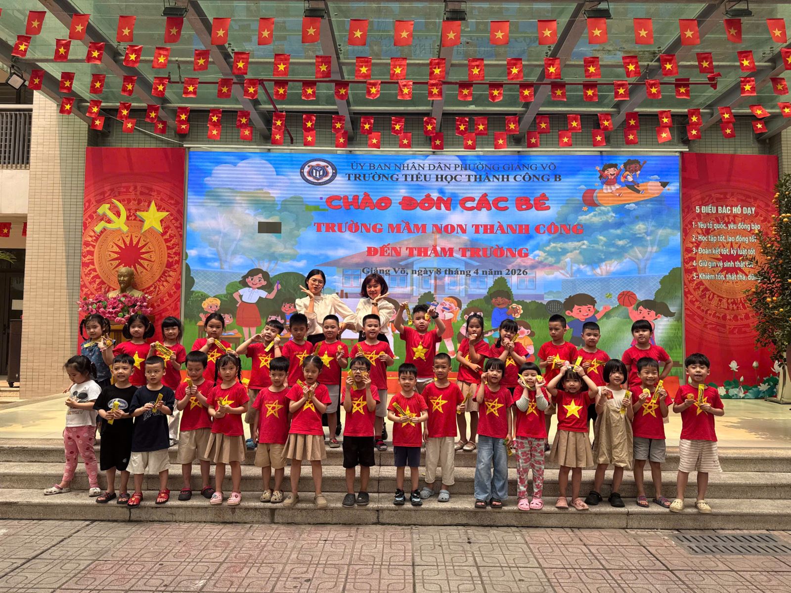 Tiếp nối thành công của chuyến tham quan, trải nghiệm tại Trường Tiểu học Thành Công A, hôm nay, các bé 5 tuổi Trường Mầm non Thành Công tiếp tục có một hành trình ý nghĩa khi đến tham quan, trải nghiệm tại Trường Tiểu học Thành Công B.
