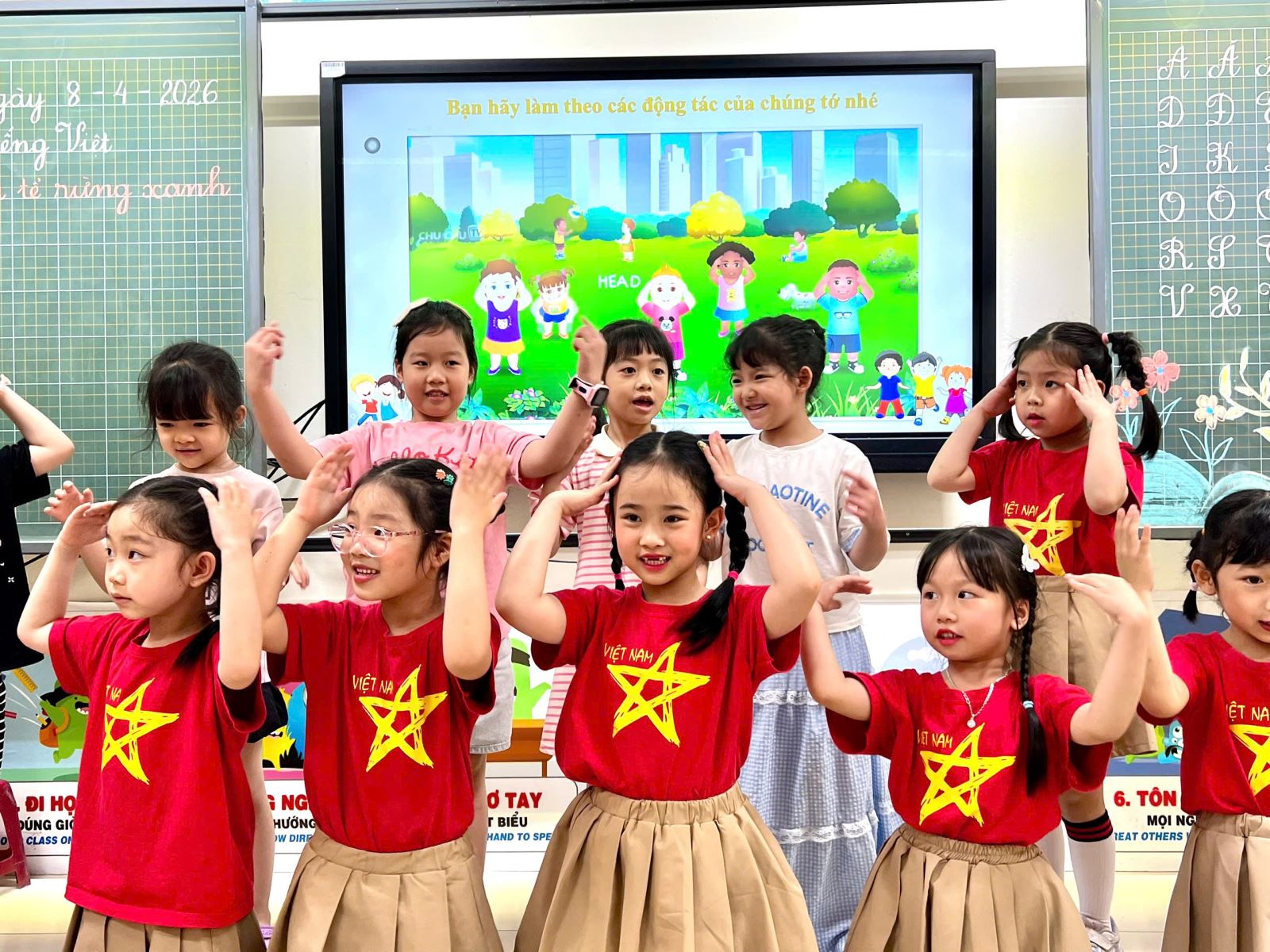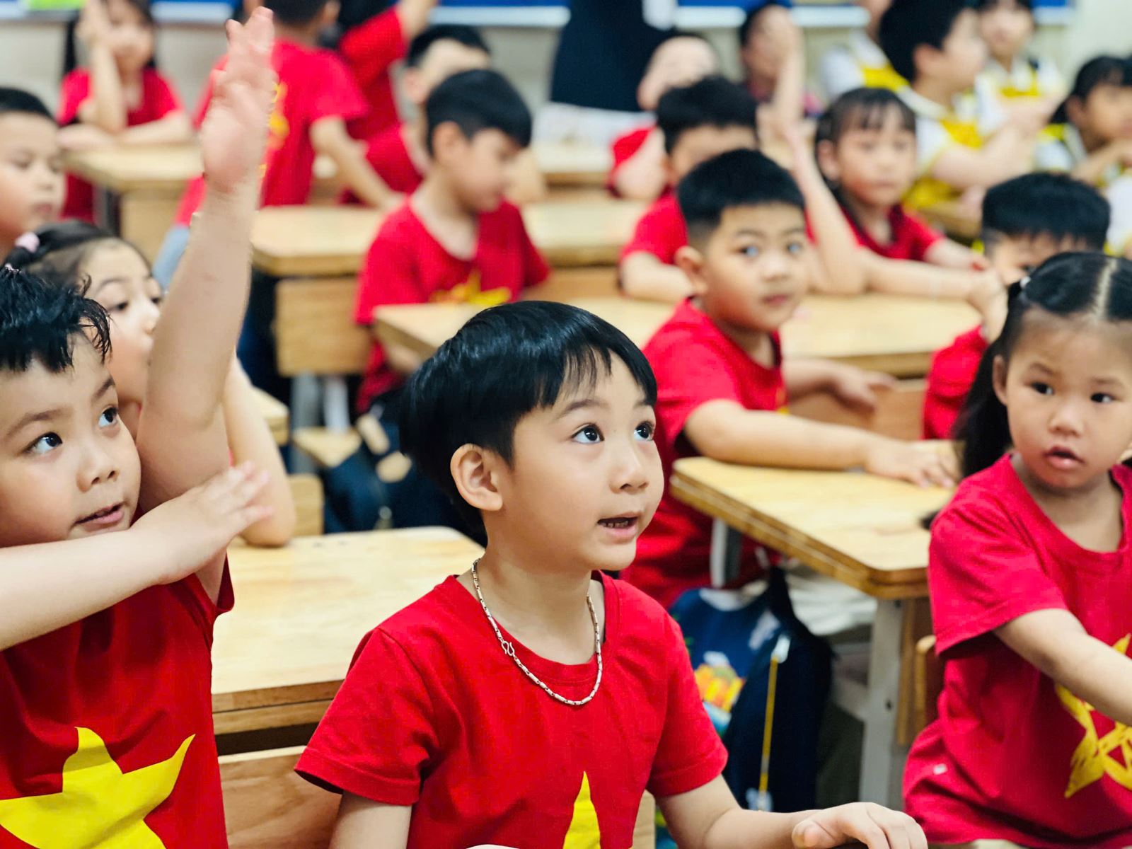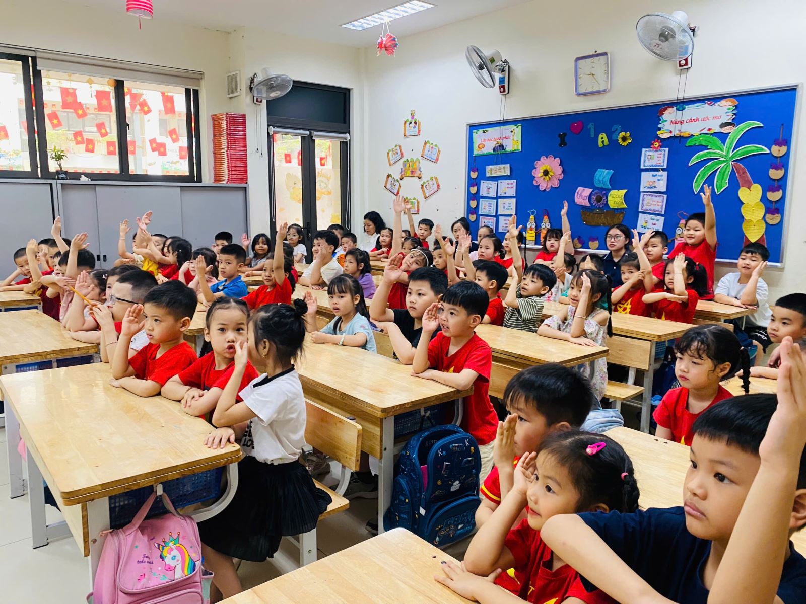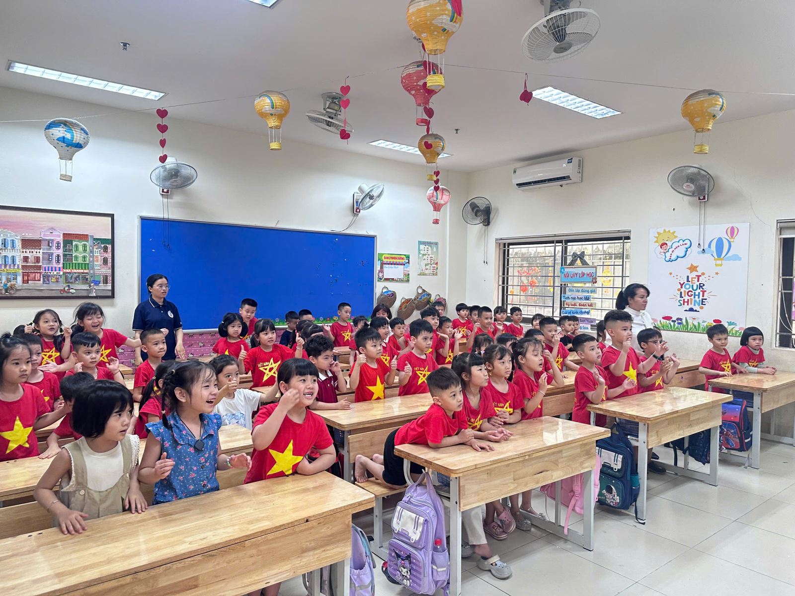 Đặc biệt, các con còn được giao lưu với các anh chị học sinh tiểu học, lắng nghe những chia sẻ gần gũi về việc học tập và sinh hoạt hàng ngày. Những trải nghiệm thực tế này đã giúp các bé thêm tự tin, hào hứng và giảm bớt sự bỡ ngỡ trước khi bước vào lớp 1.