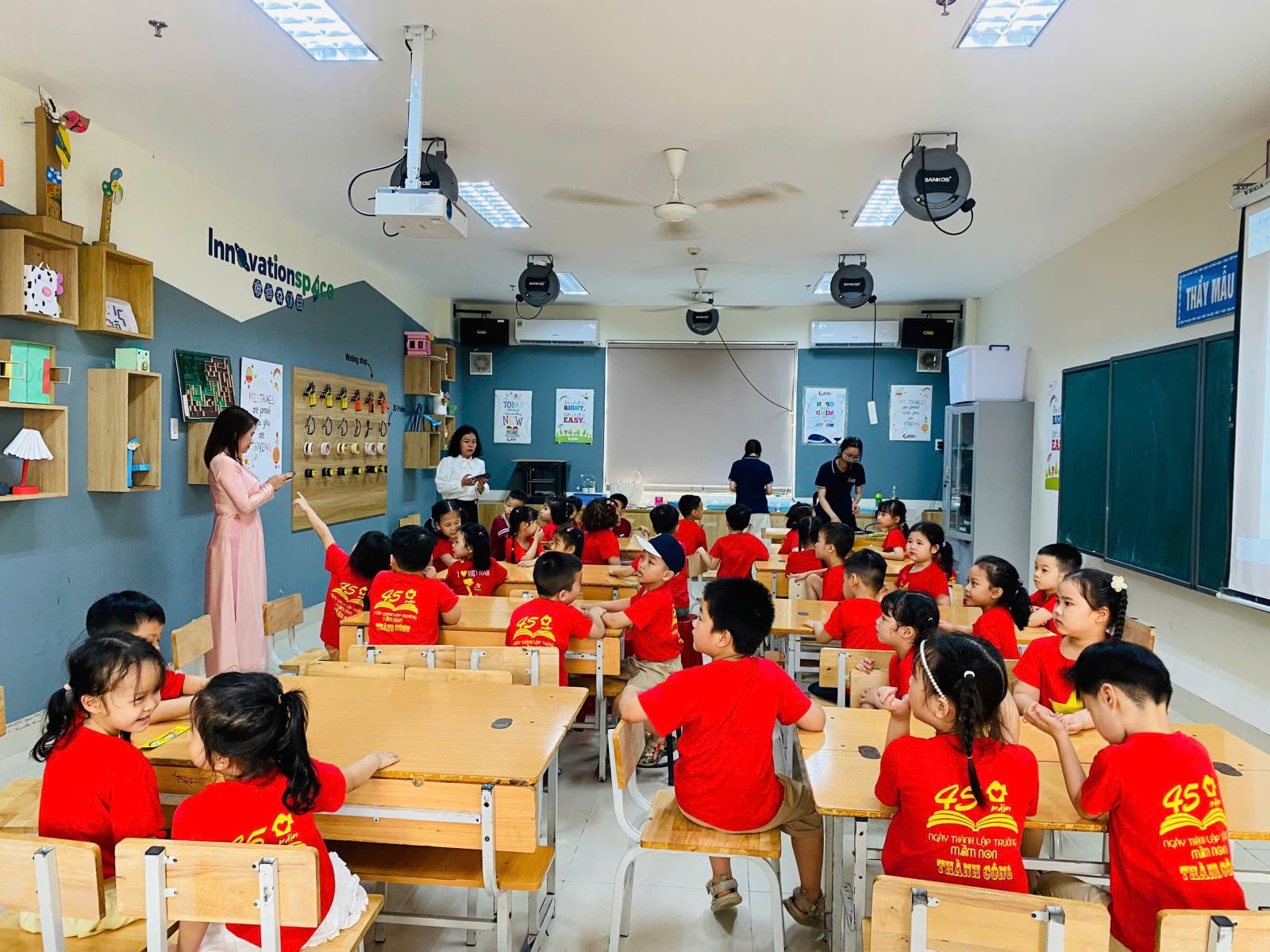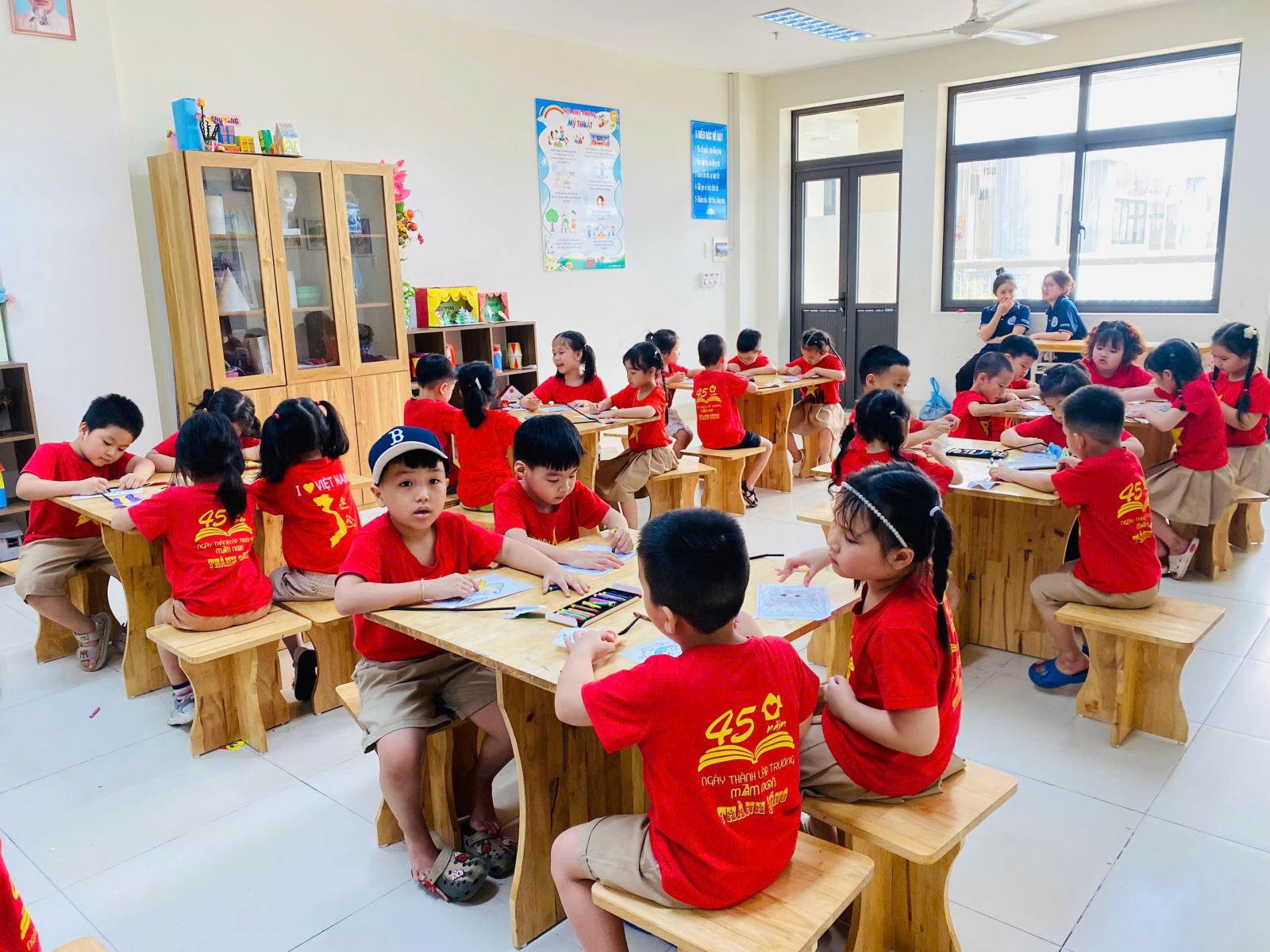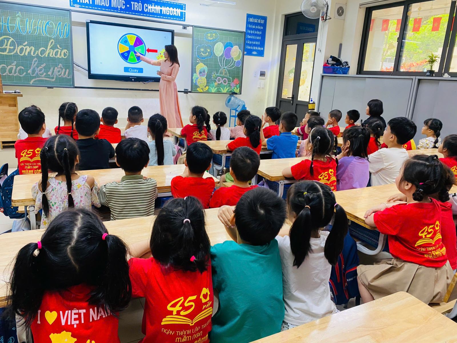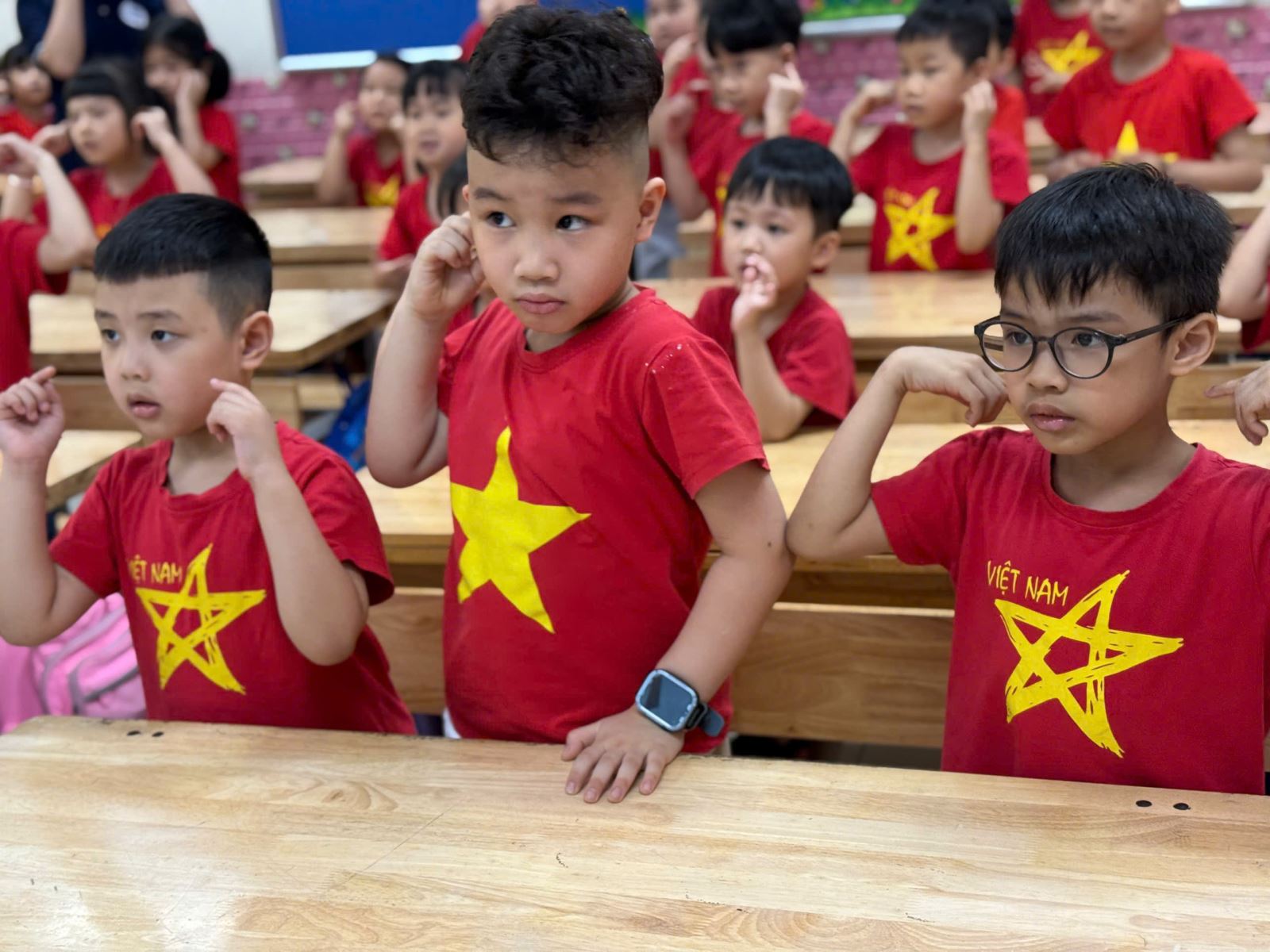 Đặc biệt, các con còn được giao lưu với các anh chị học sinh tiểu học, lắng nghe những chia sẻ gần gũi về việc học tập và sinh hoạt hàng ngày. Những trải nghiệm thực tế này đã giúp các bé thêm tự tin, hào hứng và giảm bớt sự bỡ ngỡ trước khi bước vào lớp 1.