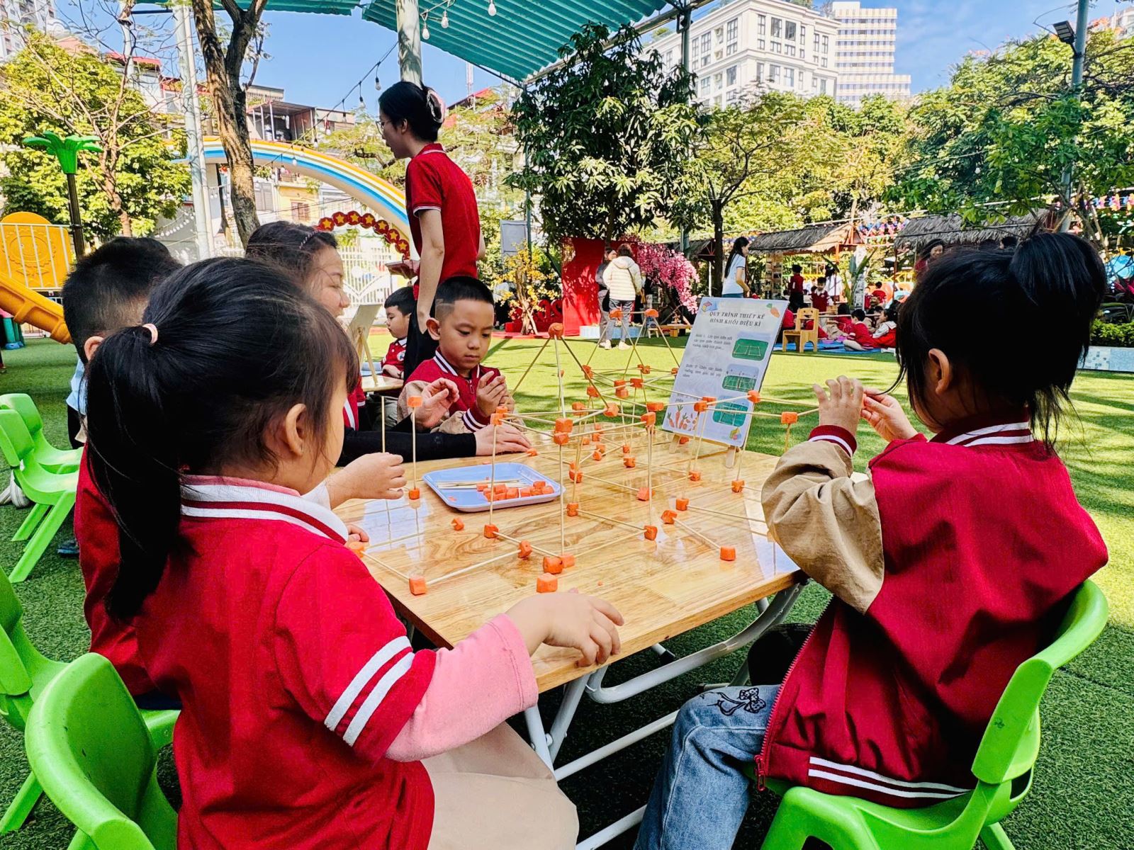Tại buổi chuyên đề, nhà trường đã triển khai các nội dung trọng tâm theo định hướng đổi mới giáo dục mầm non, lấy trẻ làm trung tâm. Các hoạt động được xây dựng khoa học, linh hoạt, sáng tạo; môi trường lớp học được bố trí thân thiện, an toàn, phù hợp với từng độ tuổi, tạo điều kiện cho trẻ được học bằng chơi – chơi mà học.