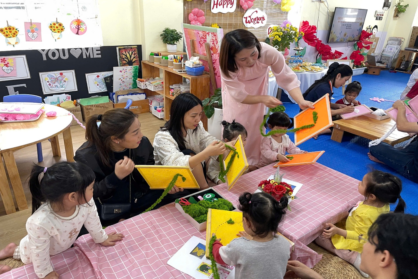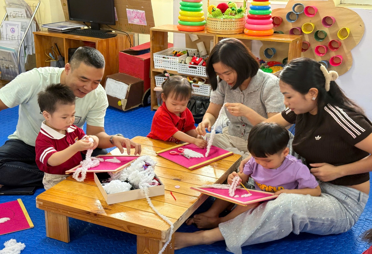 Hoạt động không chỉ giúp rèn luyện sự khéo léo của đôi tay, mà còn kết nối giữa bố mẹ và các con.