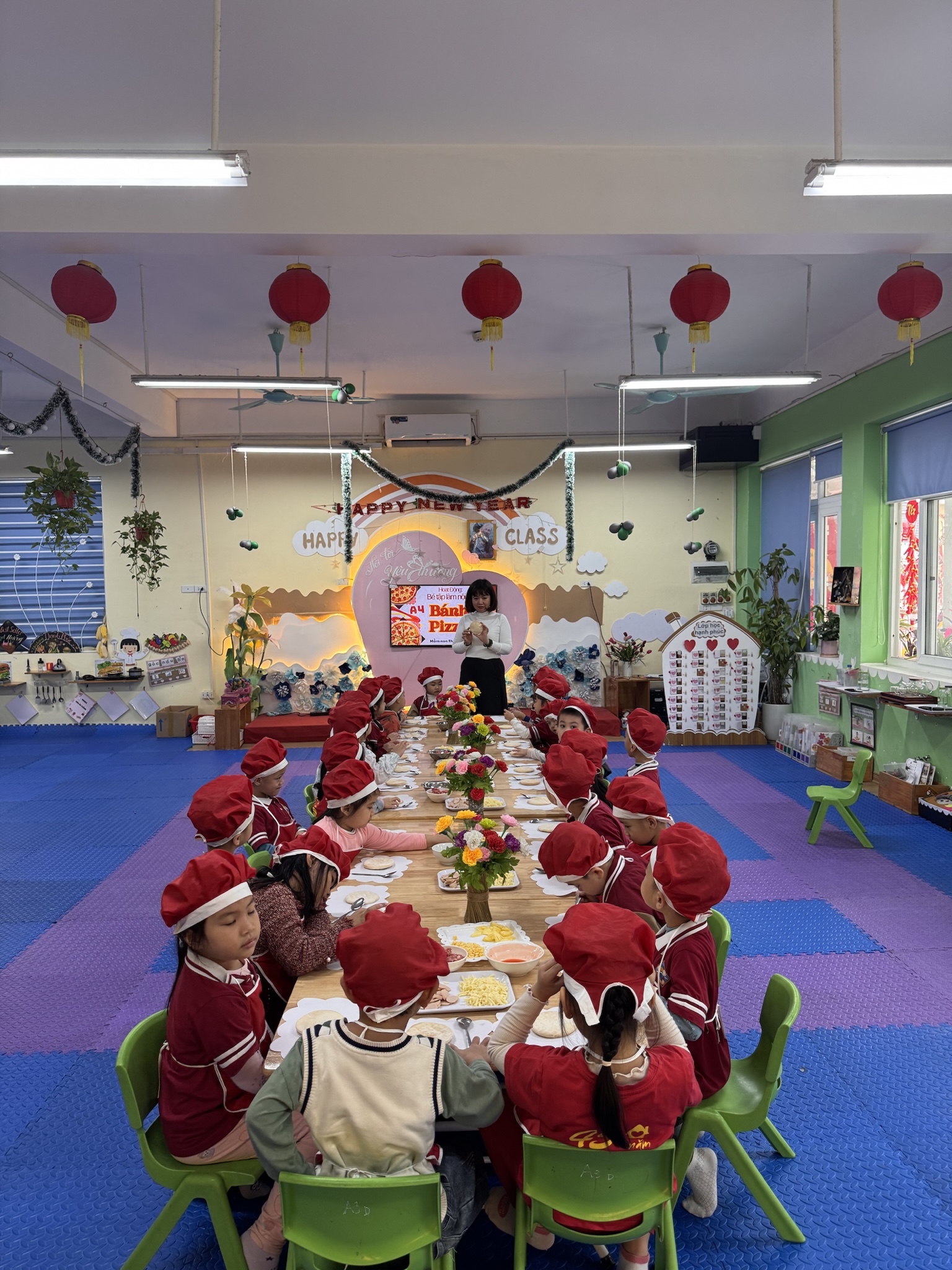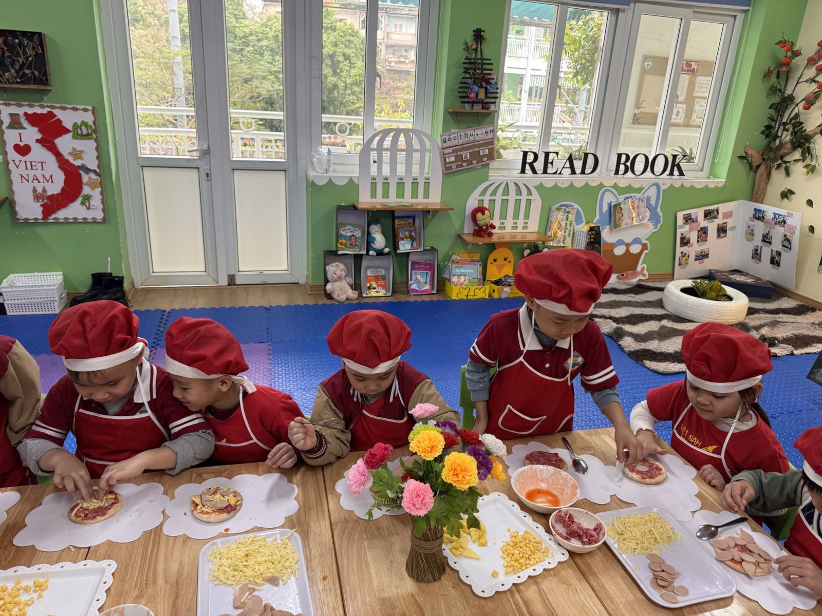 Từ phết sốt, rắc phô mai đến chọn topping yêu thích, bạn nào cũng hào hứng, tập trung và rất khéo léo. Hoạt động giúp các con rèn sự tỉ mỉ, phối hợp tay mắt và đặc biệt là thêm yêu quý giá trị của món ăn do chính mình làm ra.