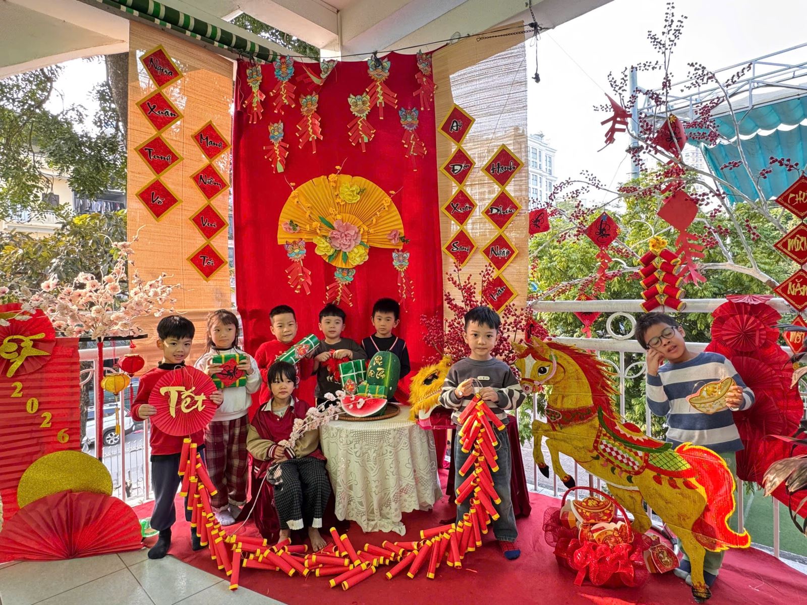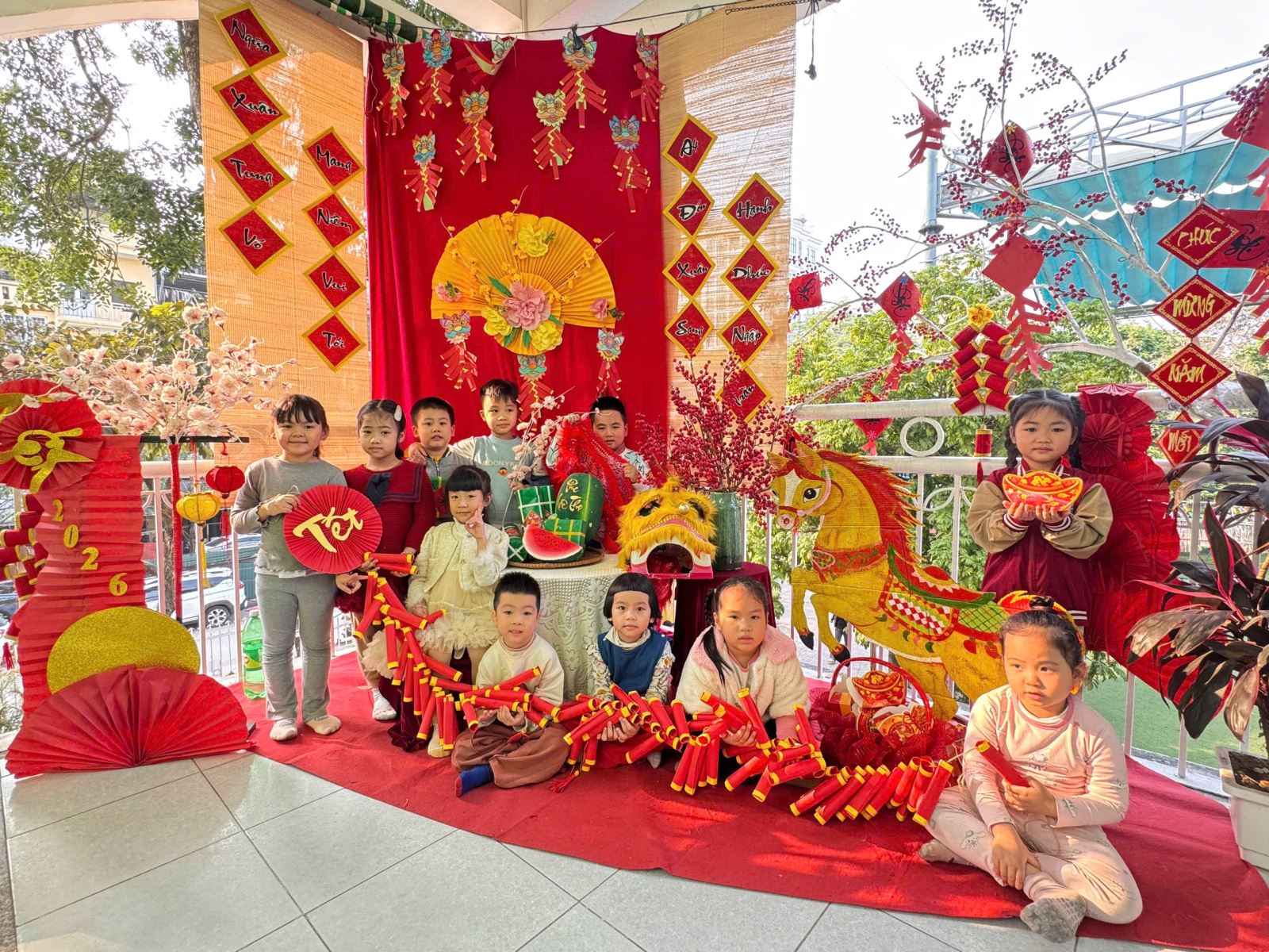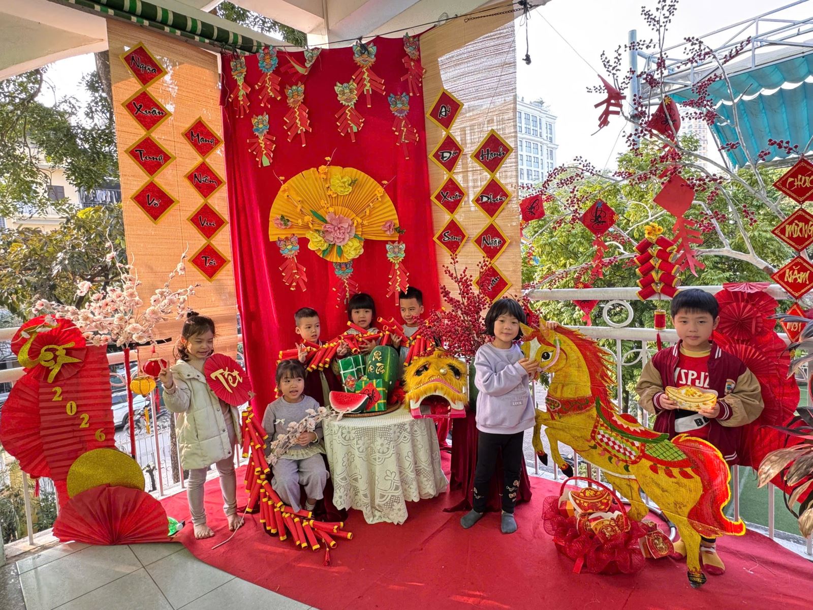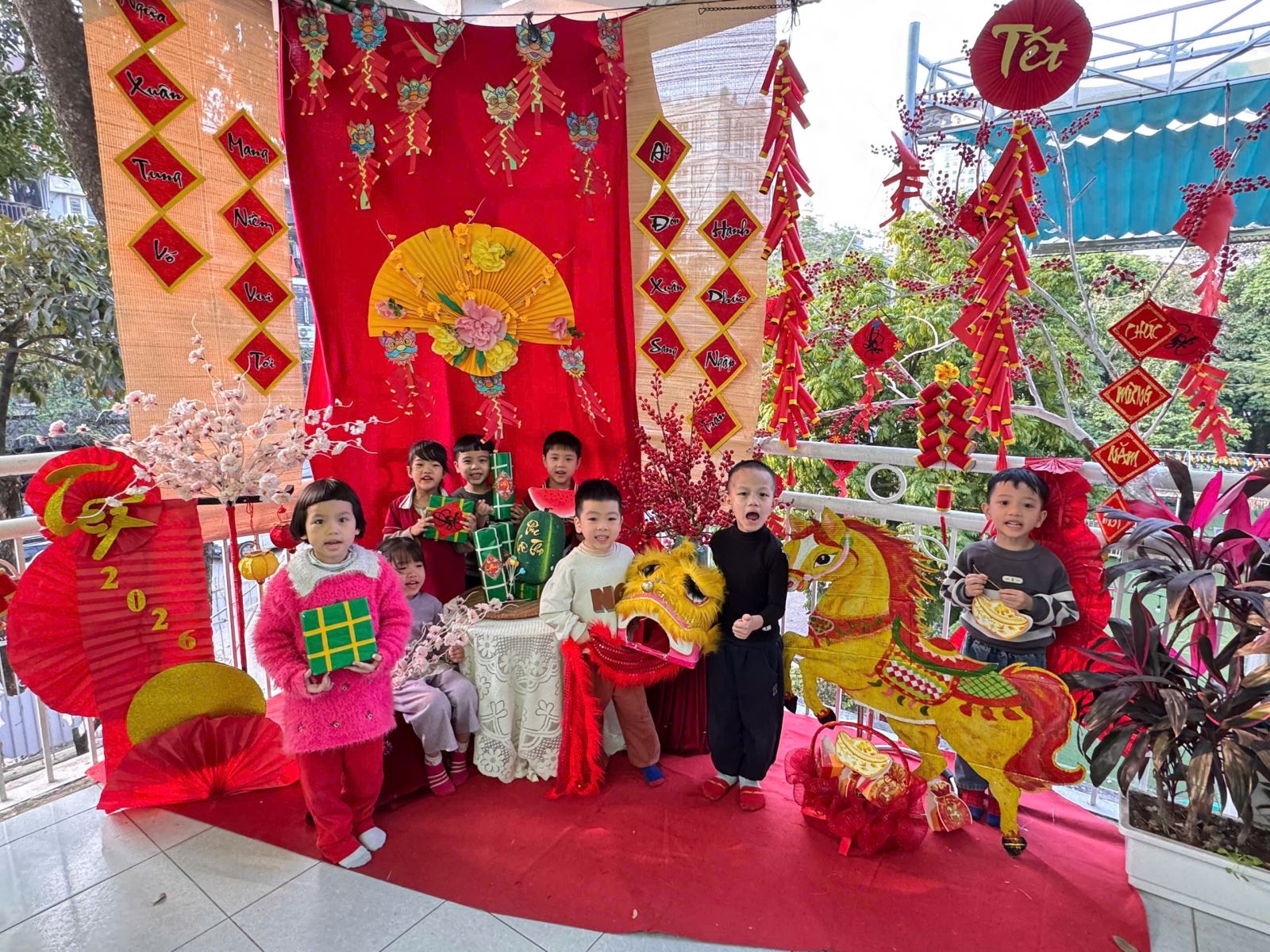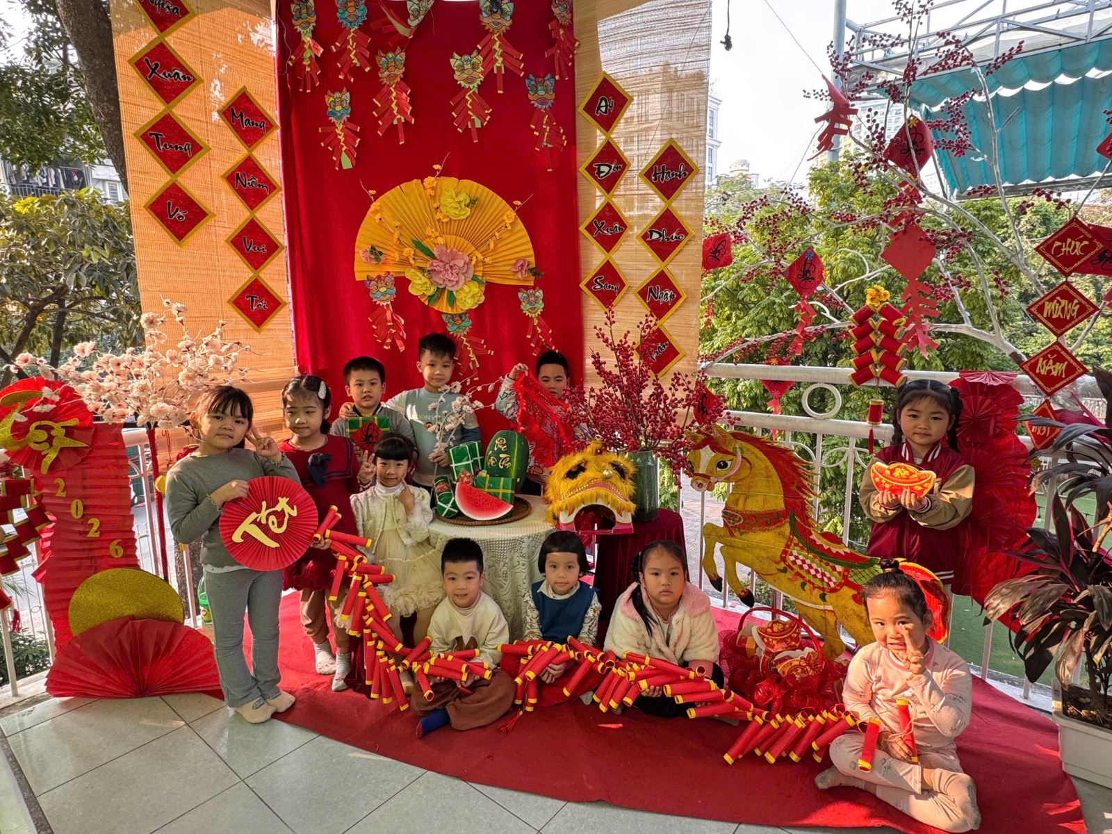Dưới sự hướng dẫn tận tình của cô giáo, các bé đã khéo léo dùng giấy màu, hồ dán và những vật liệu đơn giản để tạo nên những dây pháo nhỏ xinh với sắc đỏ rực rỡ – màu sắc tượng trưng cho may mắn và hạnh phúc trong ngày Tết. Hoạt động diễn ra trong không khí hào hứng, các bé vừa làm vừa trò chuyện, cười nói rất đáng yêu.